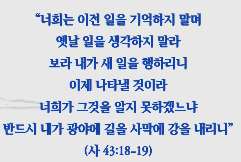 새 일을 행하시는 하나님을 보셔야 되는 거예요.