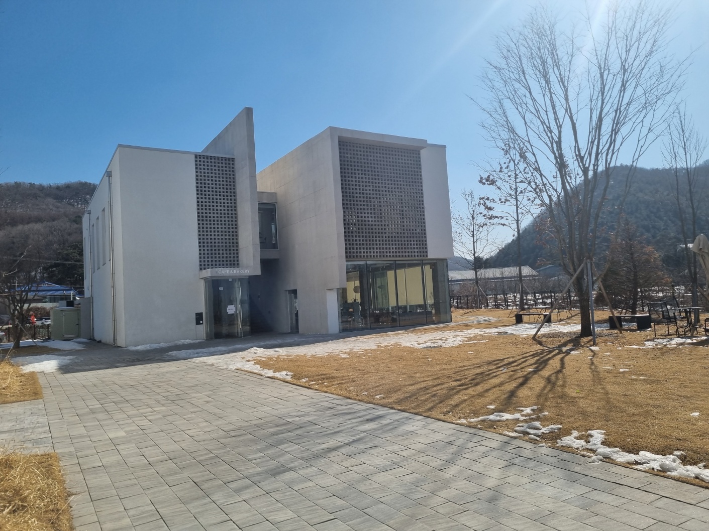 저 건물이 카페 & 베이커리예요