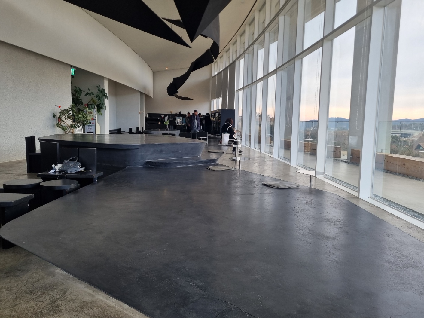 실내에서는 유리창과 기둥에 가려서