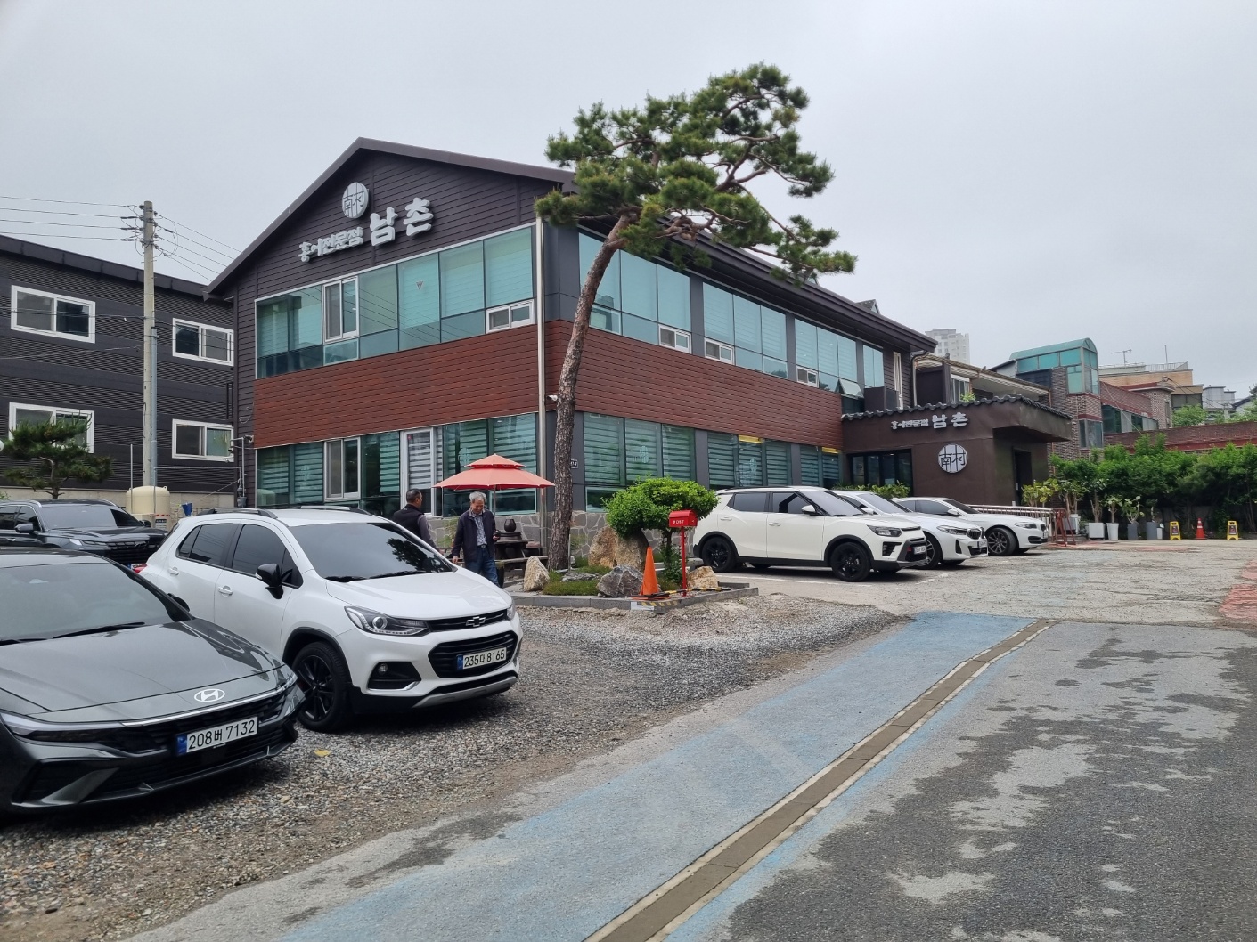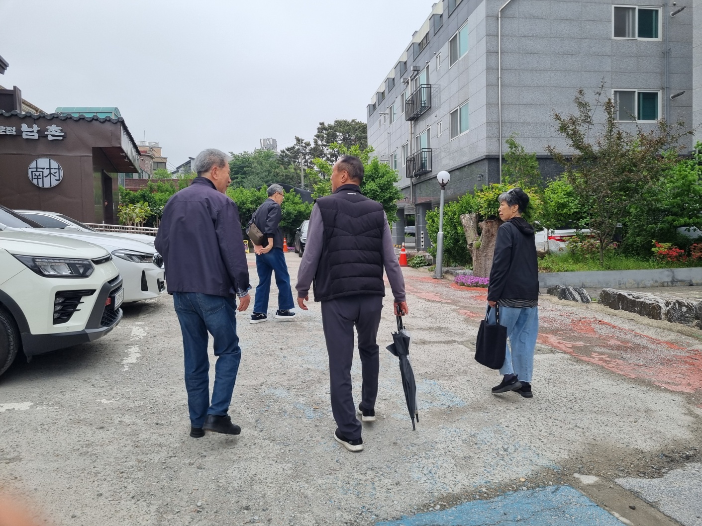 먼저 식당 마당에서 기다리시던