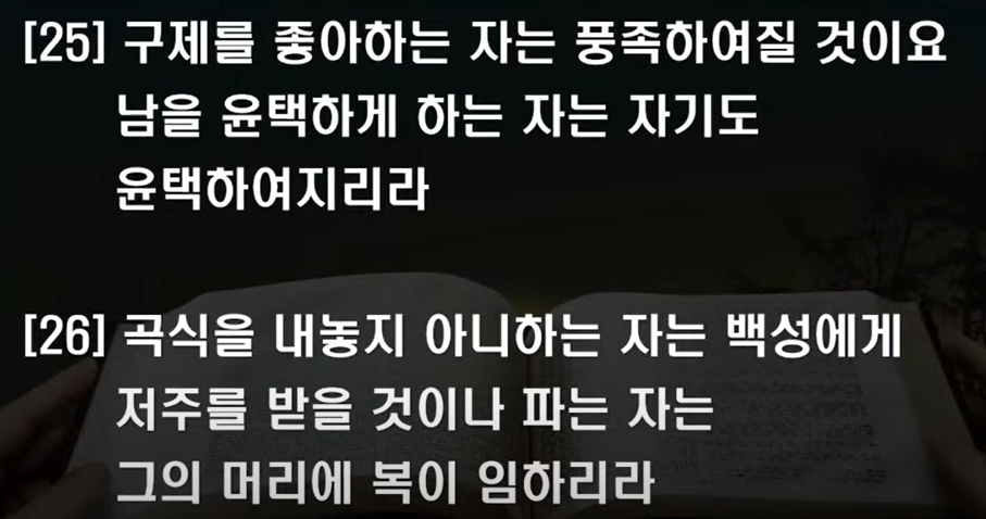 25절 구제를 좋아하는 자는 풍족해질 것이다.