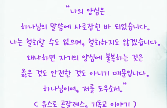 양심은 말씀에 붙잡혔어요.