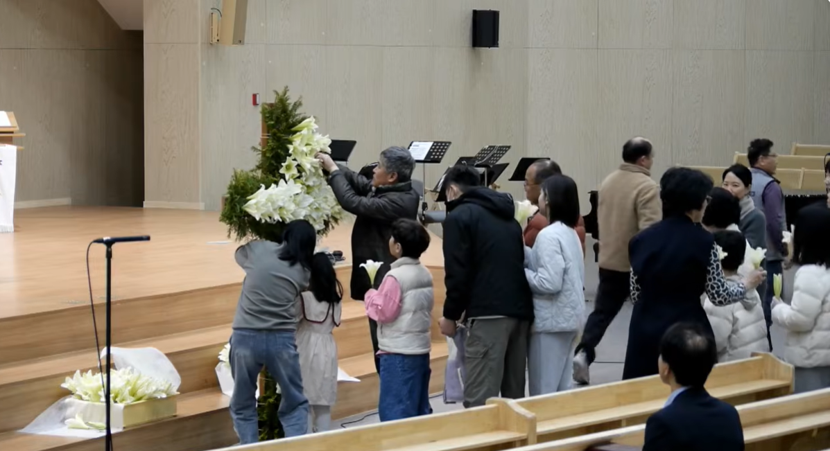 우리 교회는 전통적으로 십자가에 백합을