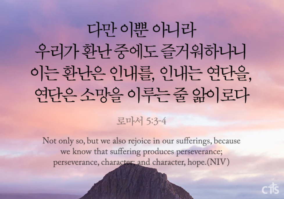 아멘!! 로마서 5장 3.4절 말씀입니다