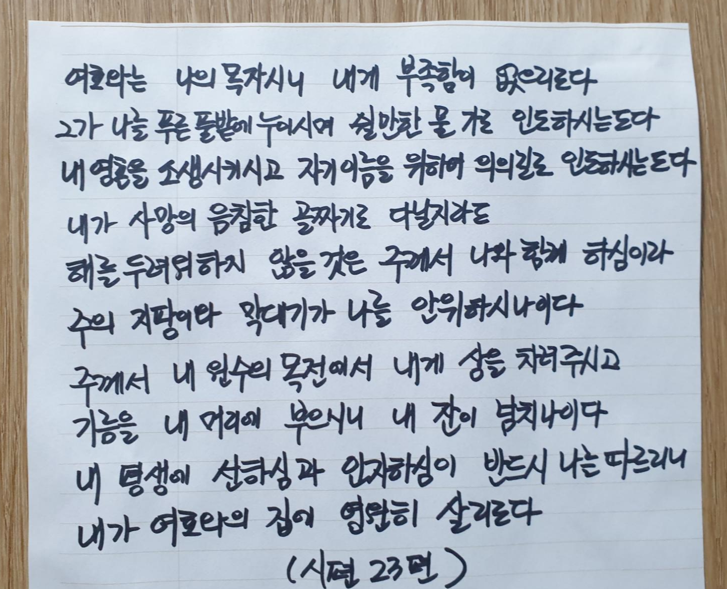 시편 23편을 계속 헤서 듣고 또 들으면