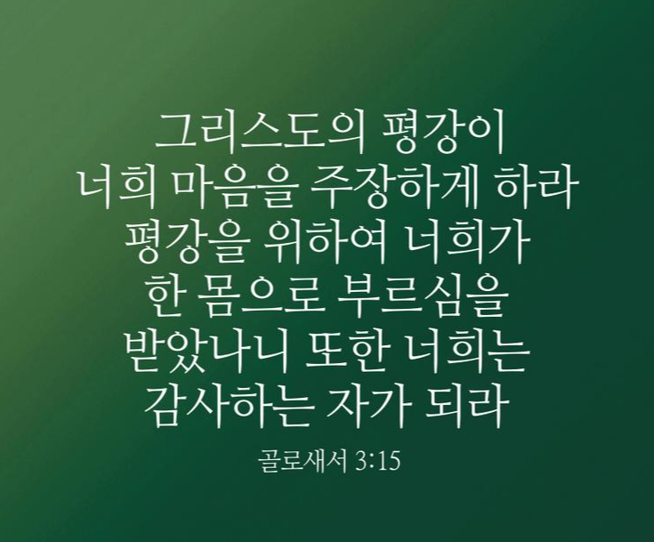 주님과 주님의 평강이 우리의 마음을 주장하도록