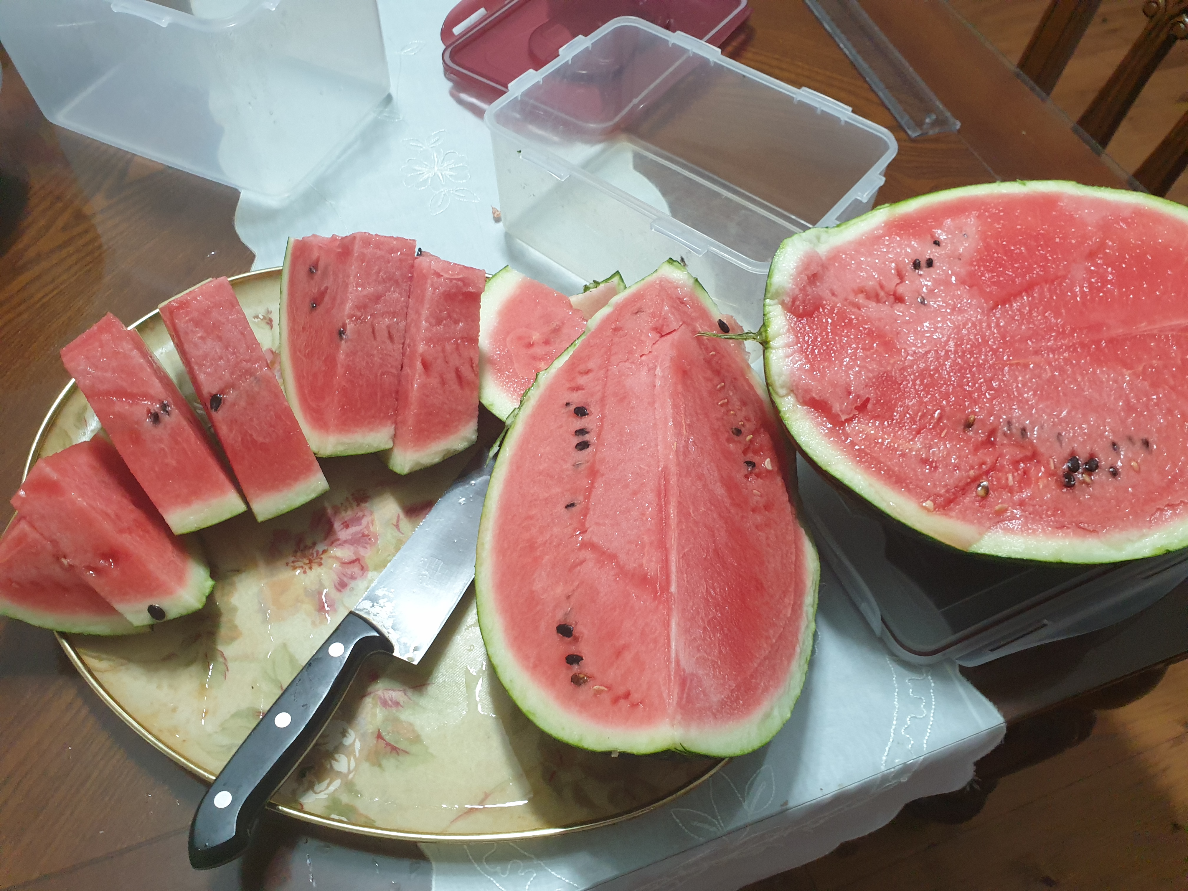 우리 재이가 좋아하는 수박을 잘라 통에 넣고