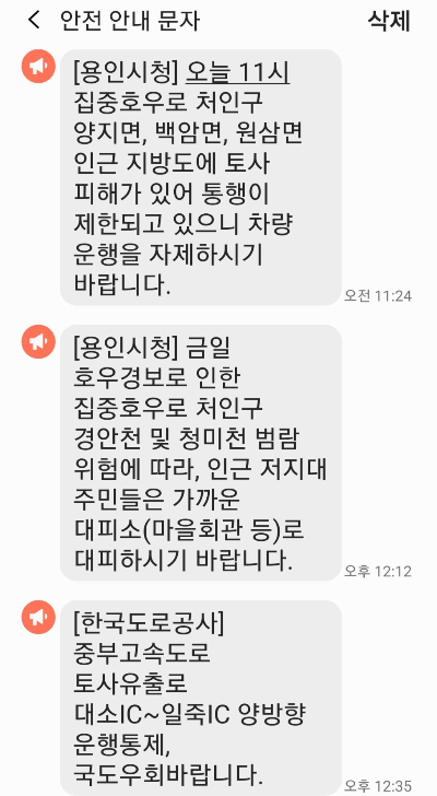 삑삑거리며 계속 들어오는 안전 안내 문자에도