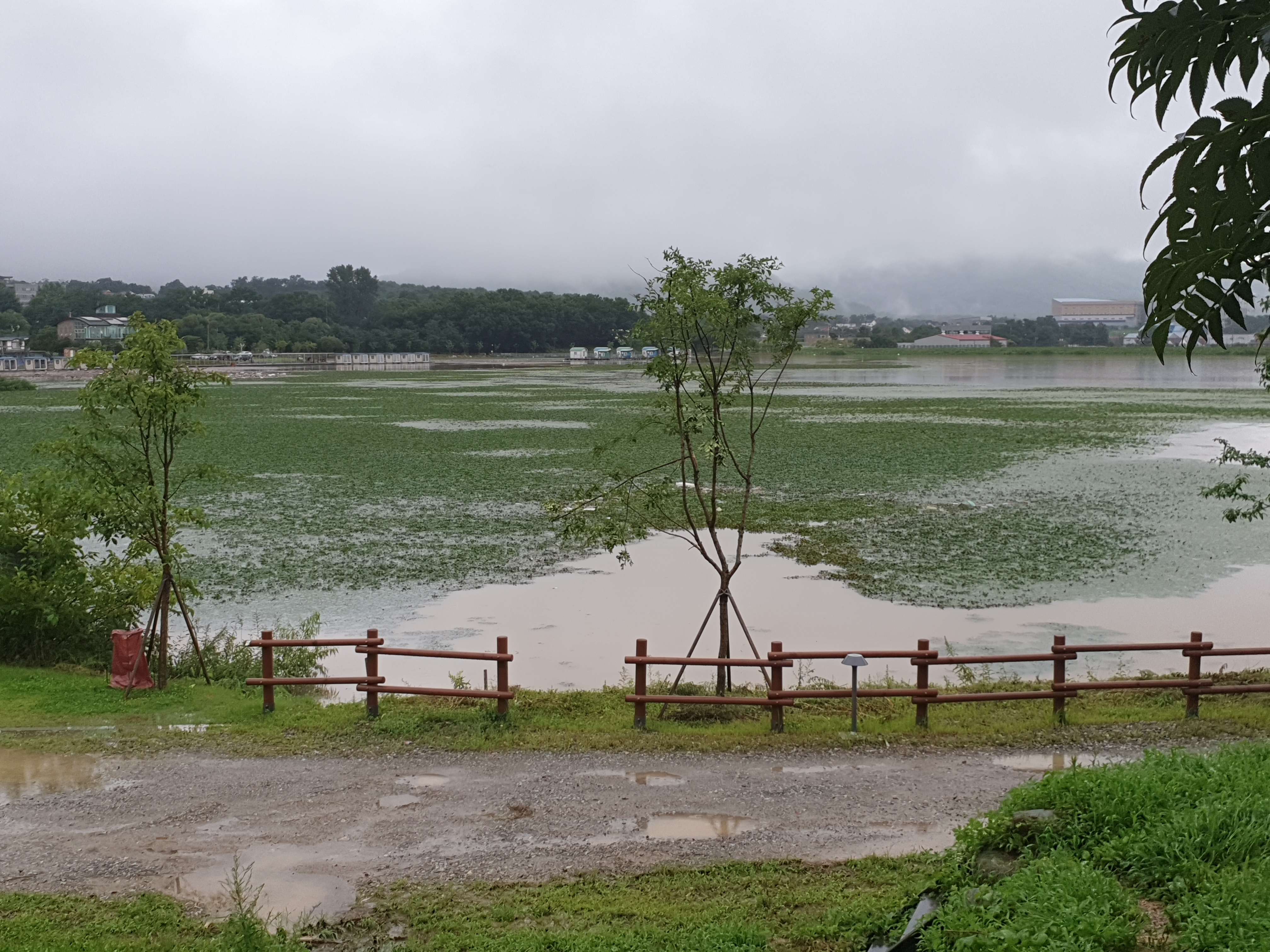 헉~~ 우리 앞마당 전체가 물에 잠겼습니다