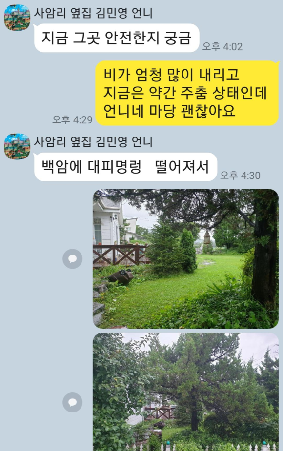 맹리 쪽에는 산사태가 있다고 해서 걱정이 됩니다