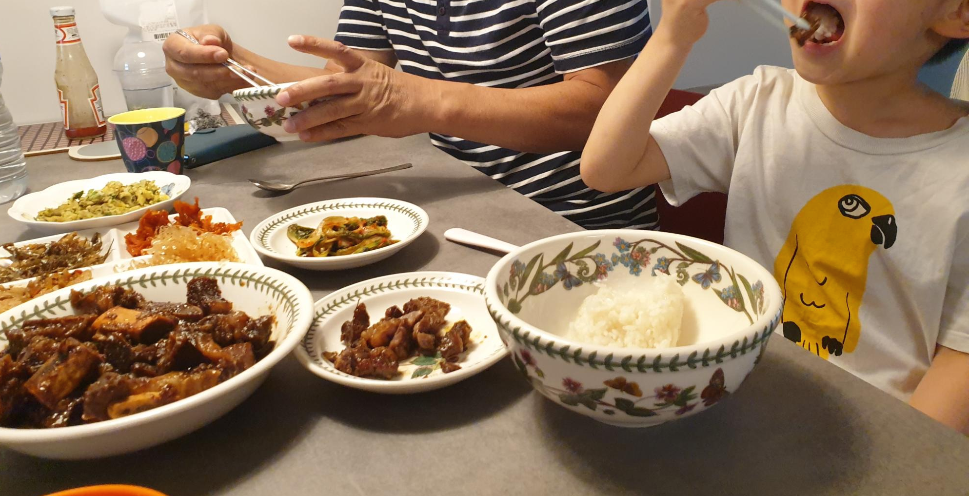 밥을 먹을 때도 할배 옆에 앉으니