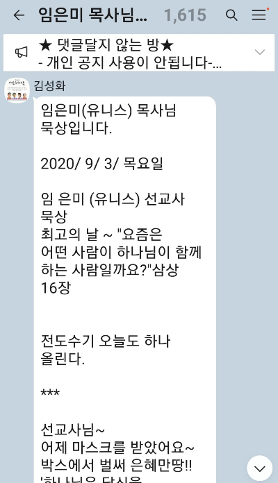 매일 아침 임은미 선교사님으로부터 받는 카톡!!