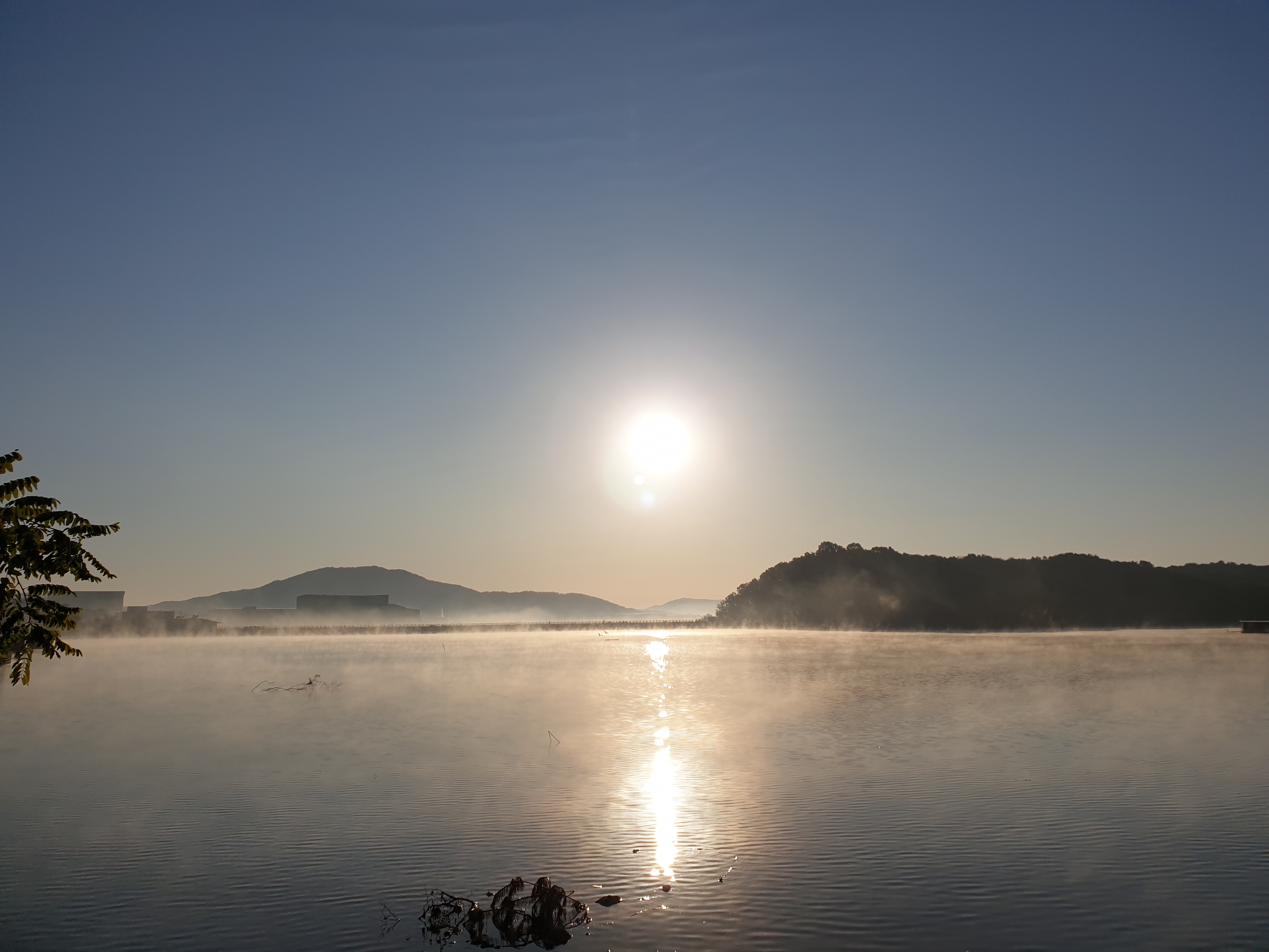 물 위를 비추는 밝은 햇살을 보니