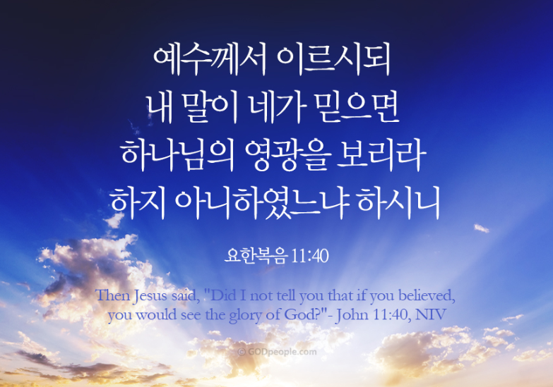 "네가 믿으면 하나님의 영광을 보리라"