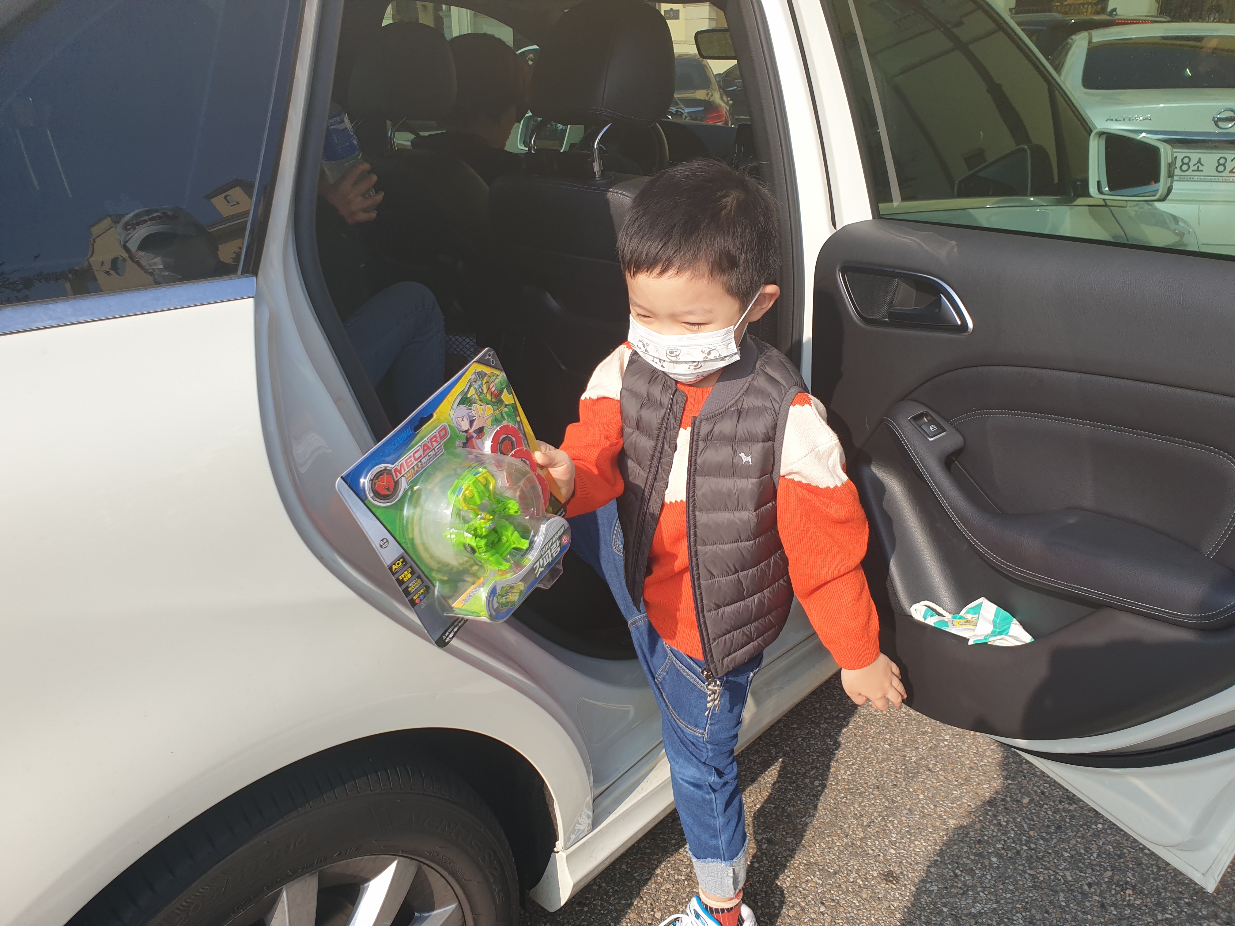 손에는 좋아하는 장난감을 들고