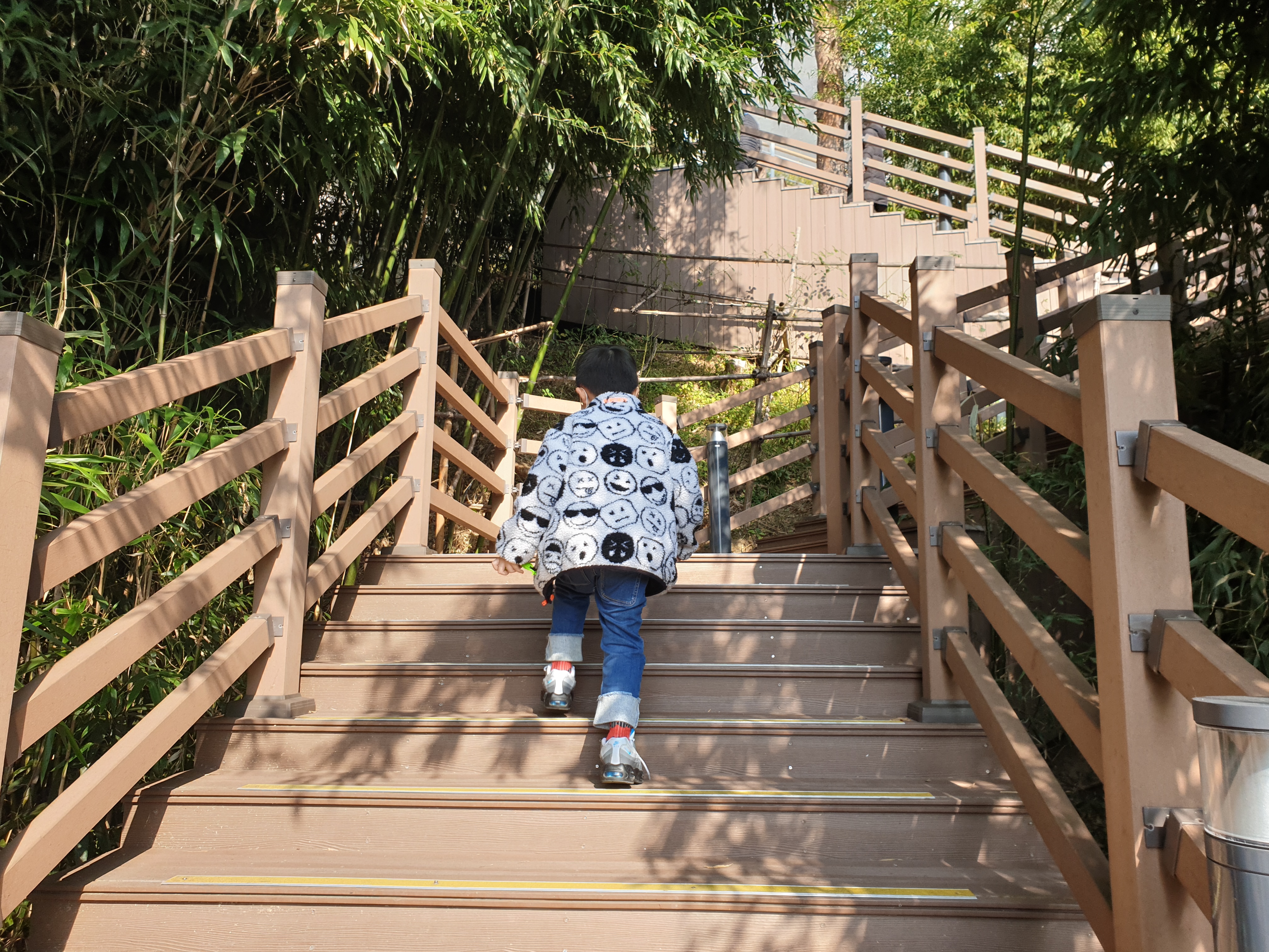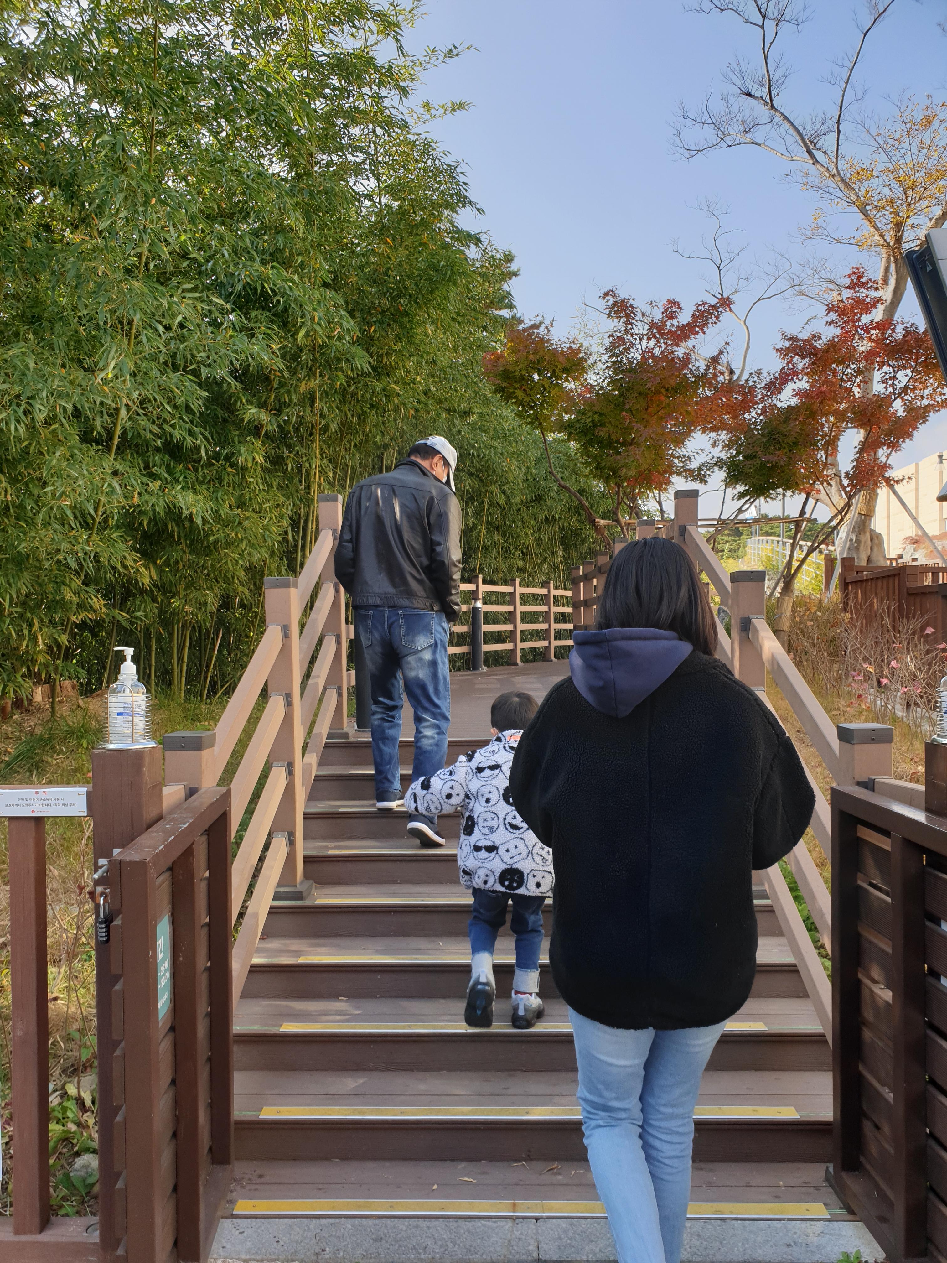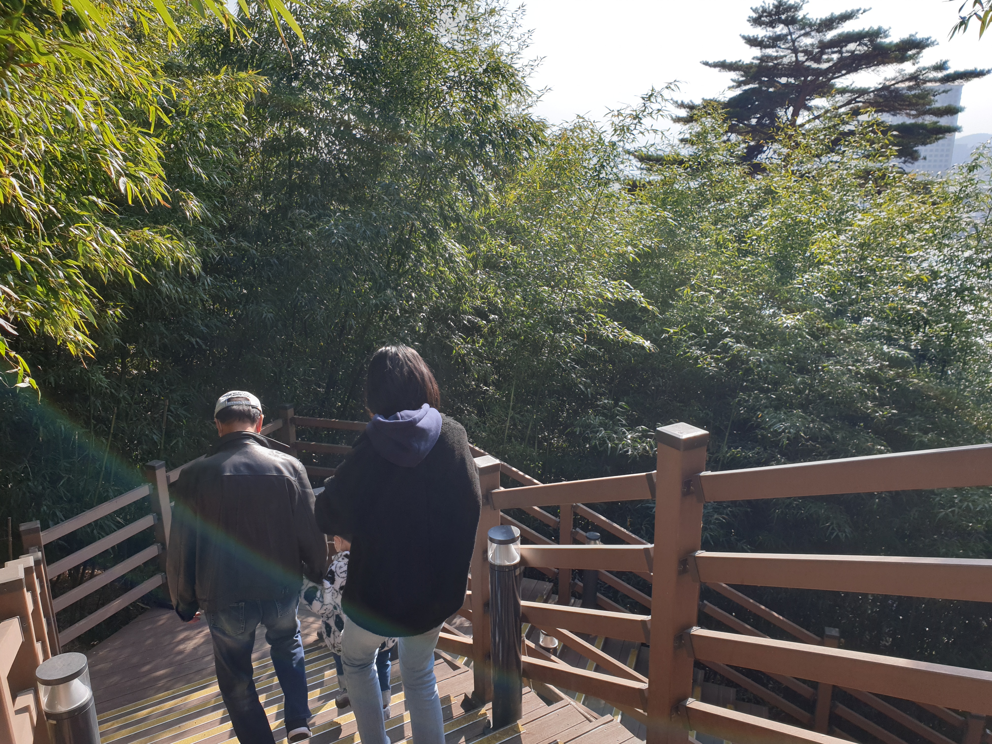대나무 숲 계단을 거의 다 올라와서야