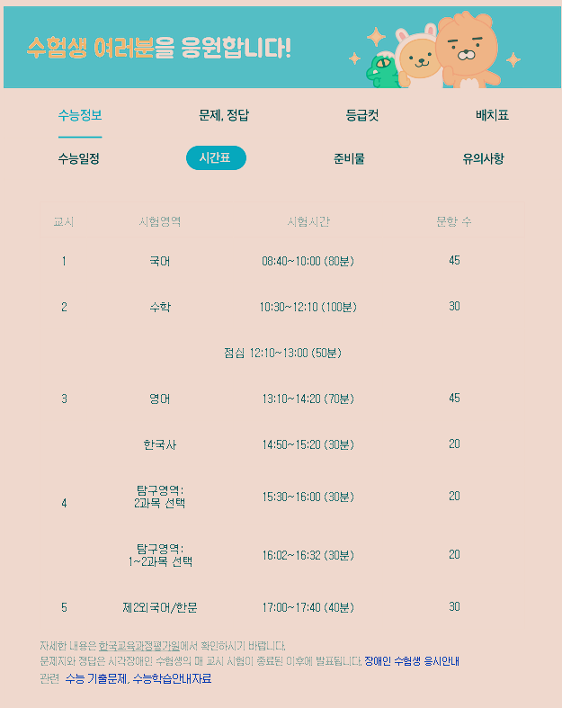 ♣2021학년도 대학수학능력시험 시간표♣
