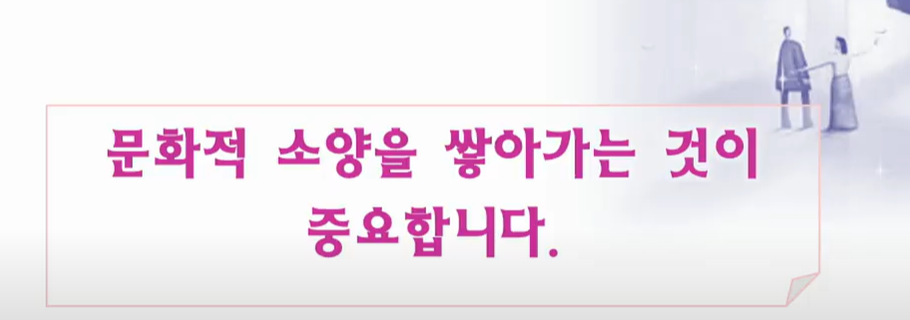 문화적 소양이 쌓아가는 것이 중요한데요