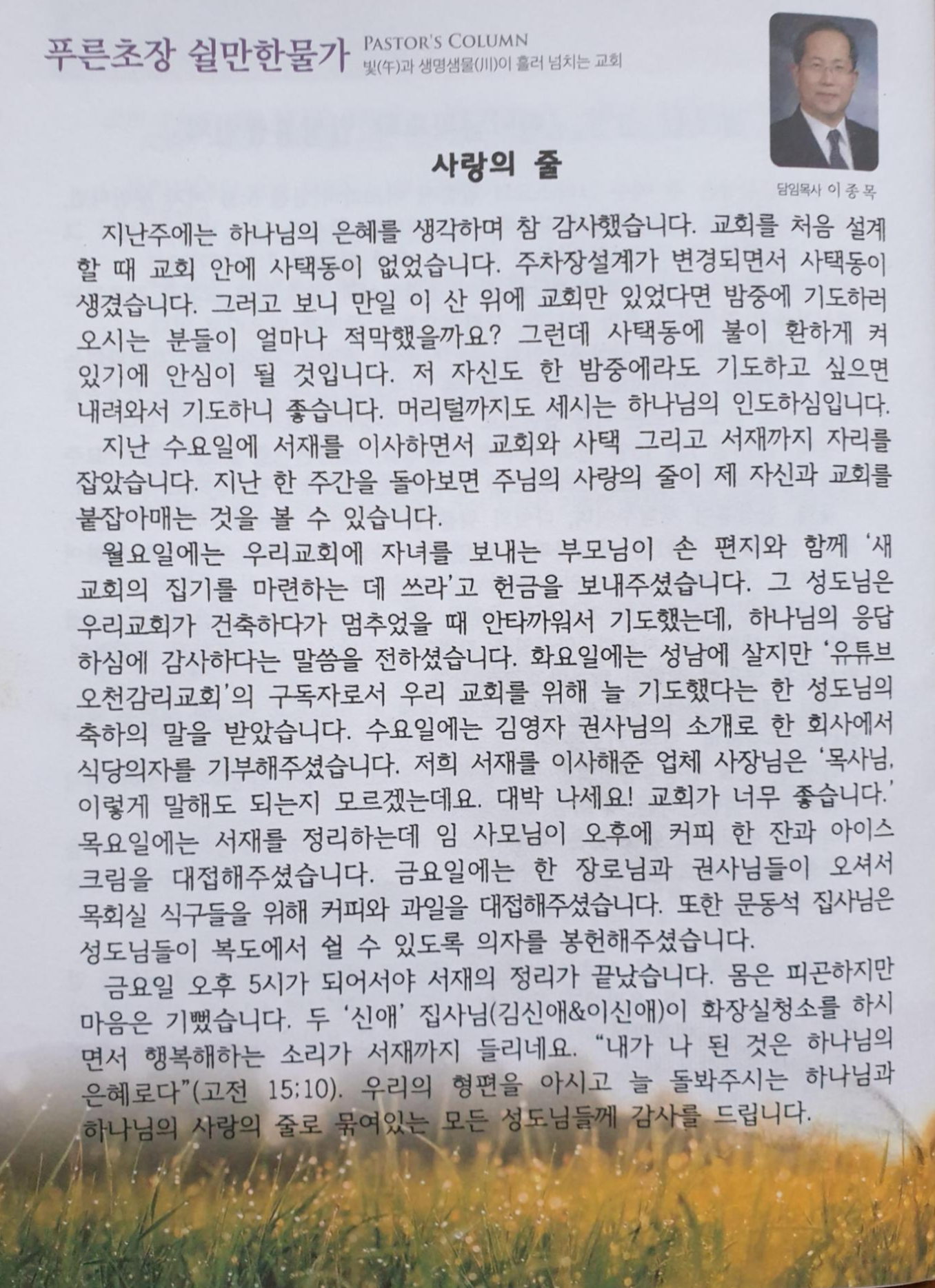 목사님의 감동스러운 칼럼을 읽으며