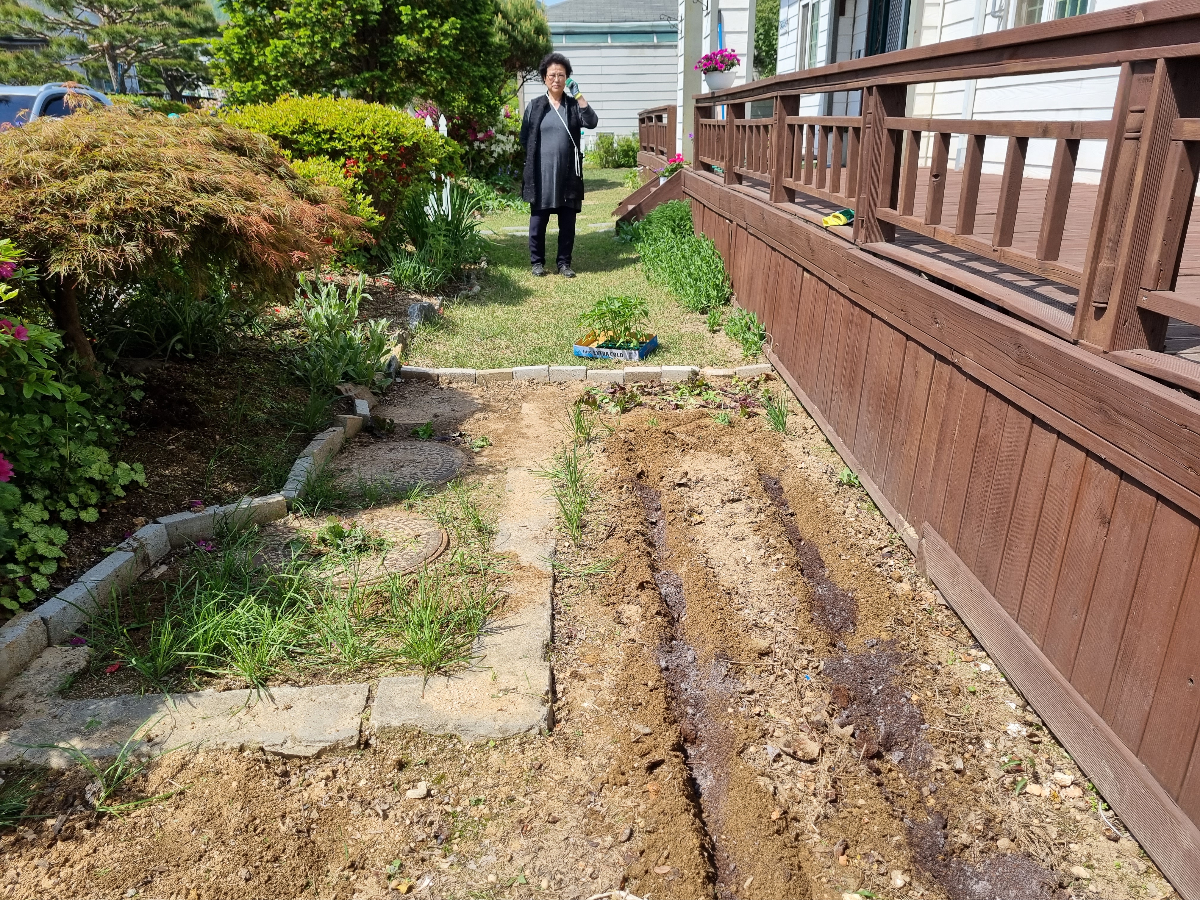 잔디밭까지 파헤쳐서 밭을 넓혀 놓았는데