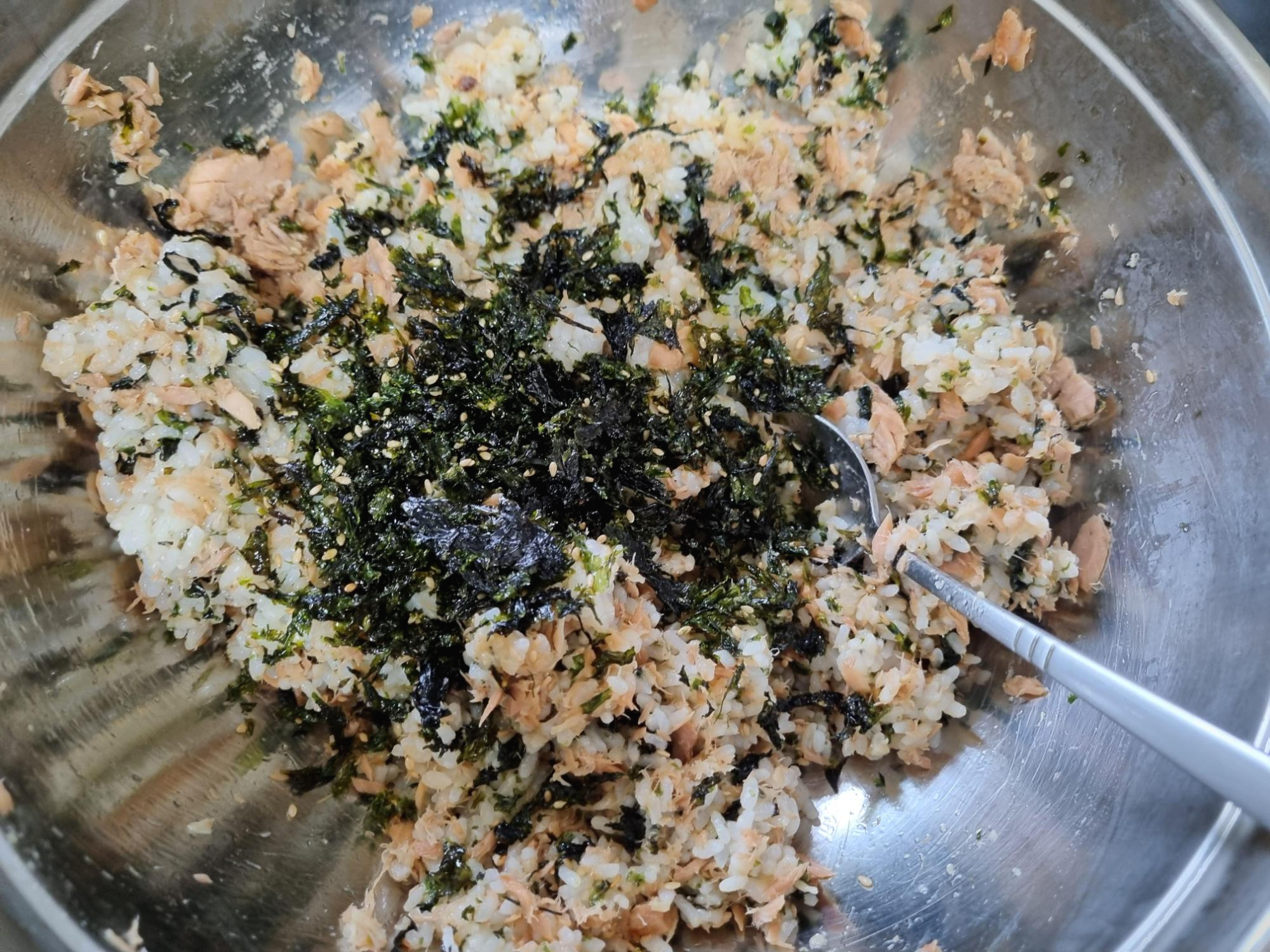 갓 지은 따끈한 밥에 김가루 뿌려서