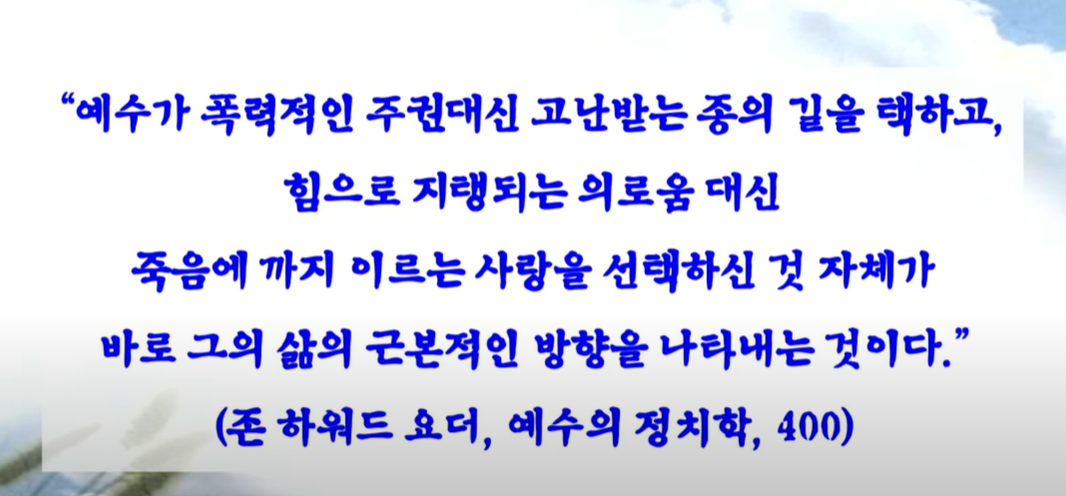 우리도 폭력 대신에 고난 받는 종의 길을 택하고
