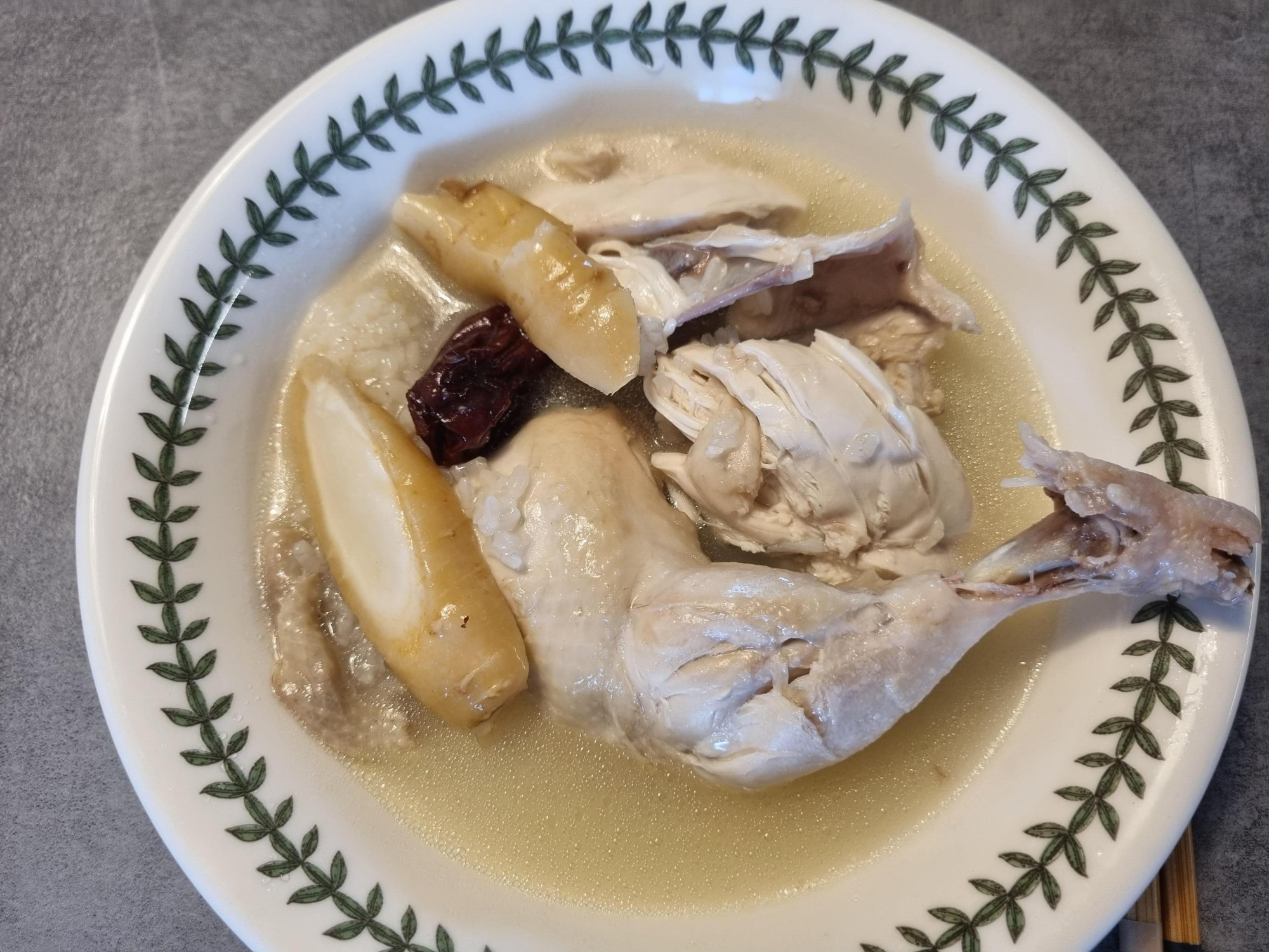 찹쌀을 넣은 삼계탕 한 그릇을 다 먹고