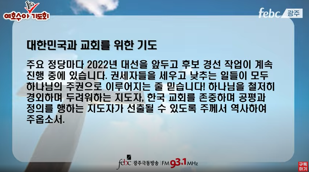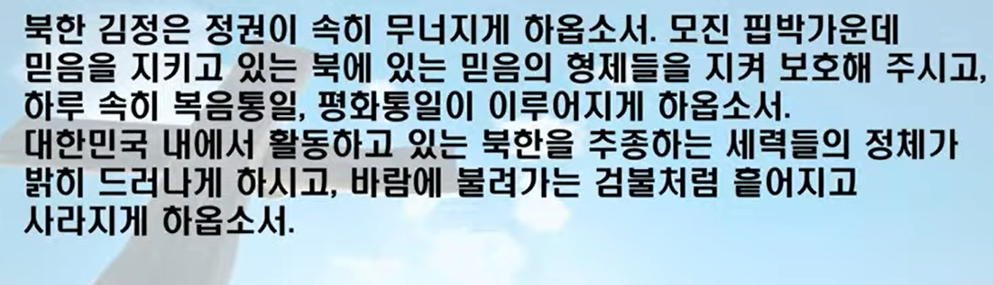 첫 번째는 늘 그렇듯이 나라와 민족을 위해 기도하고요
