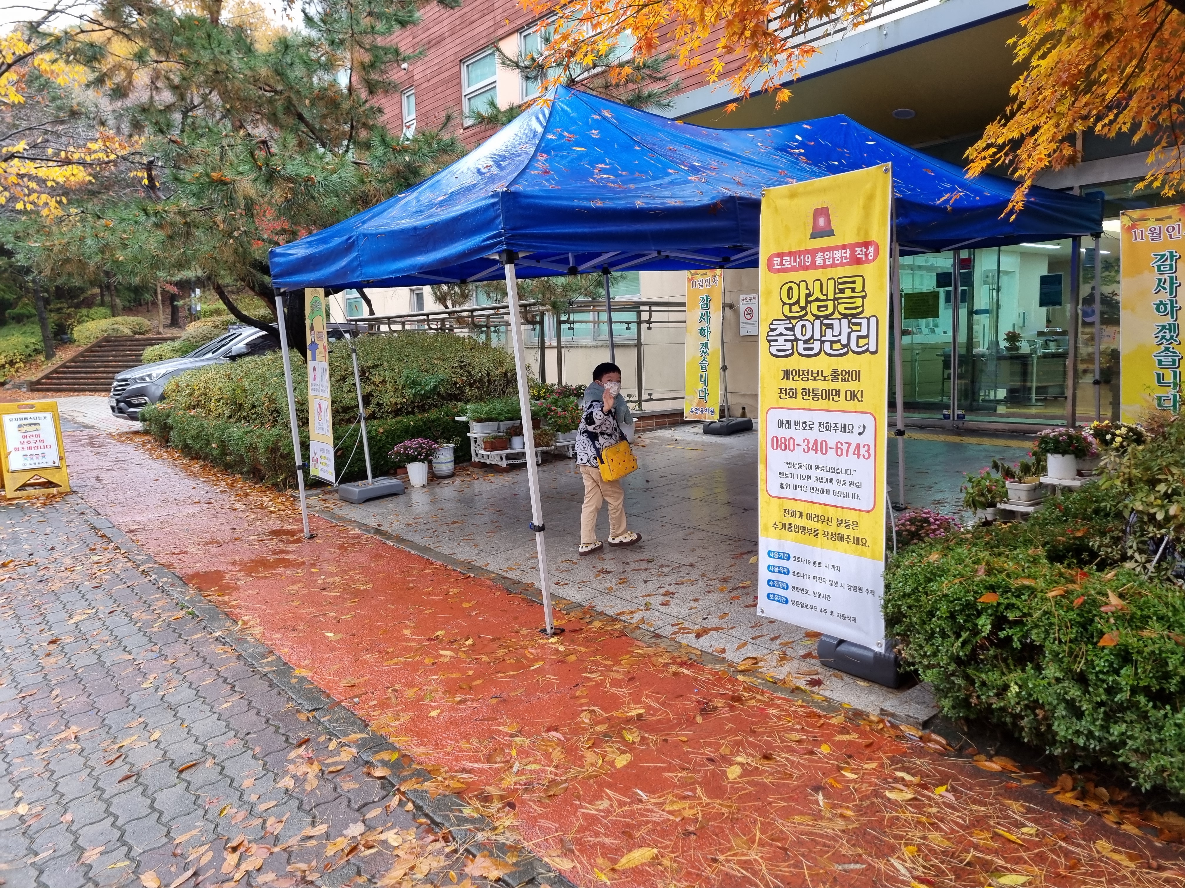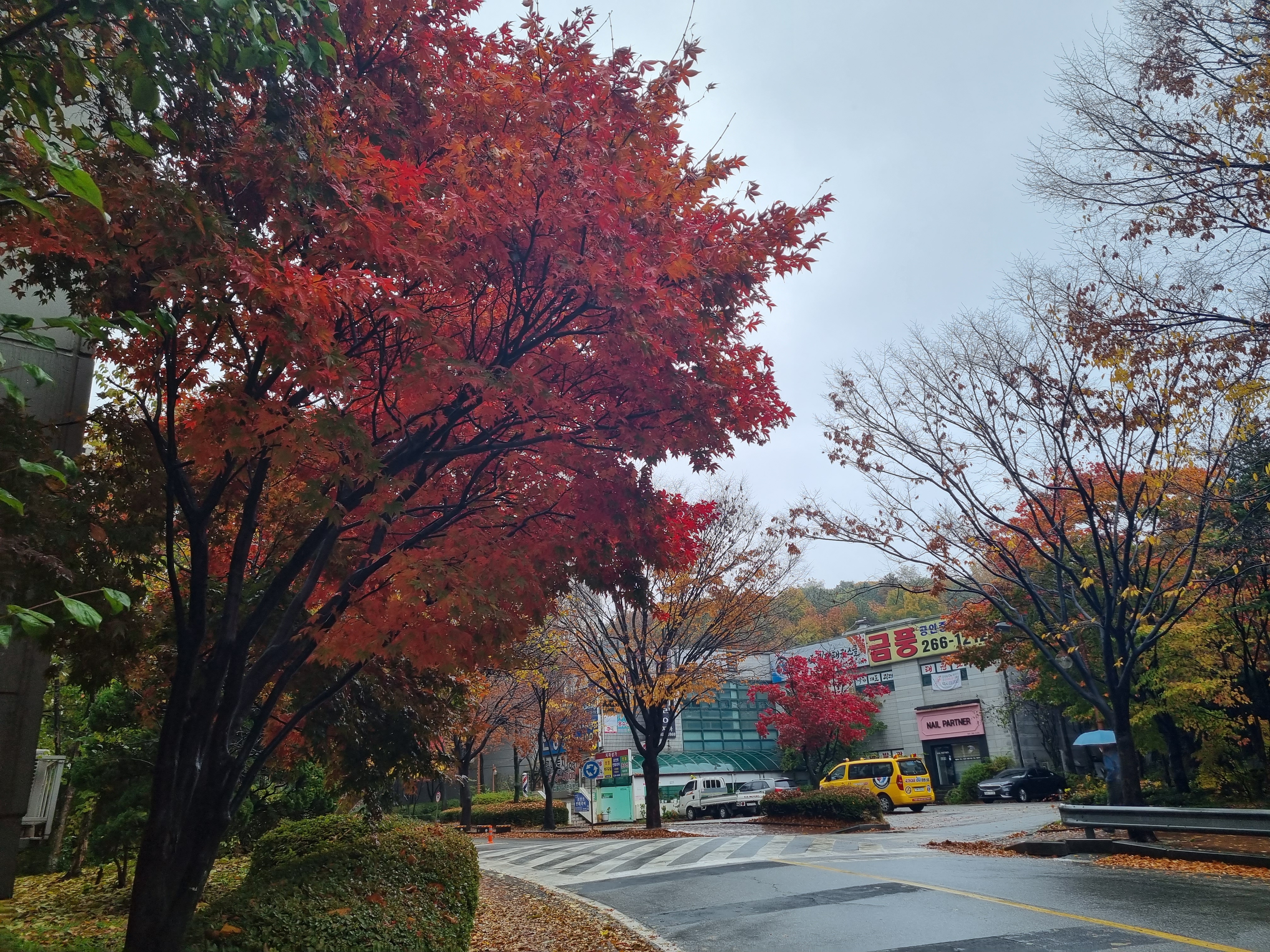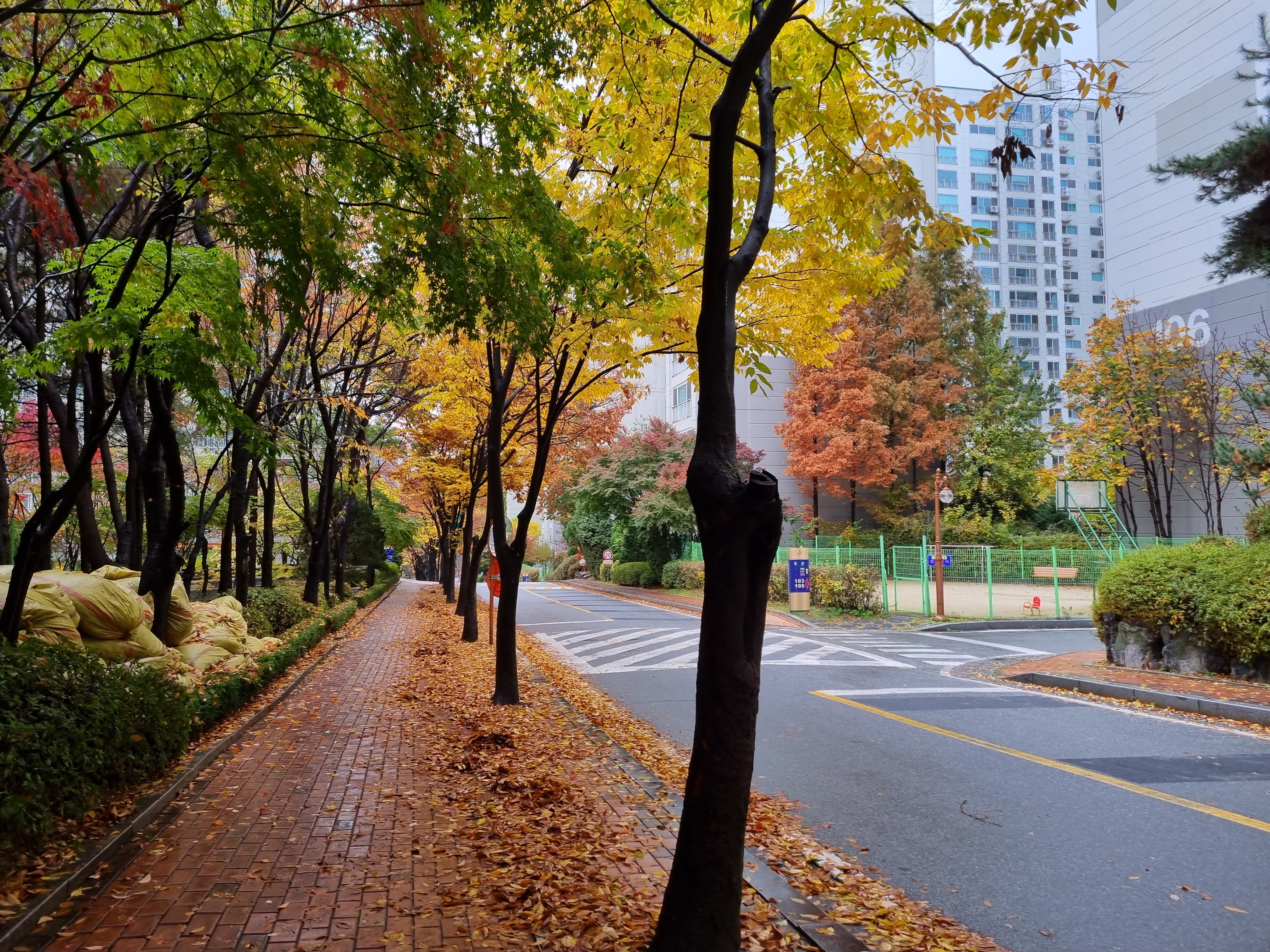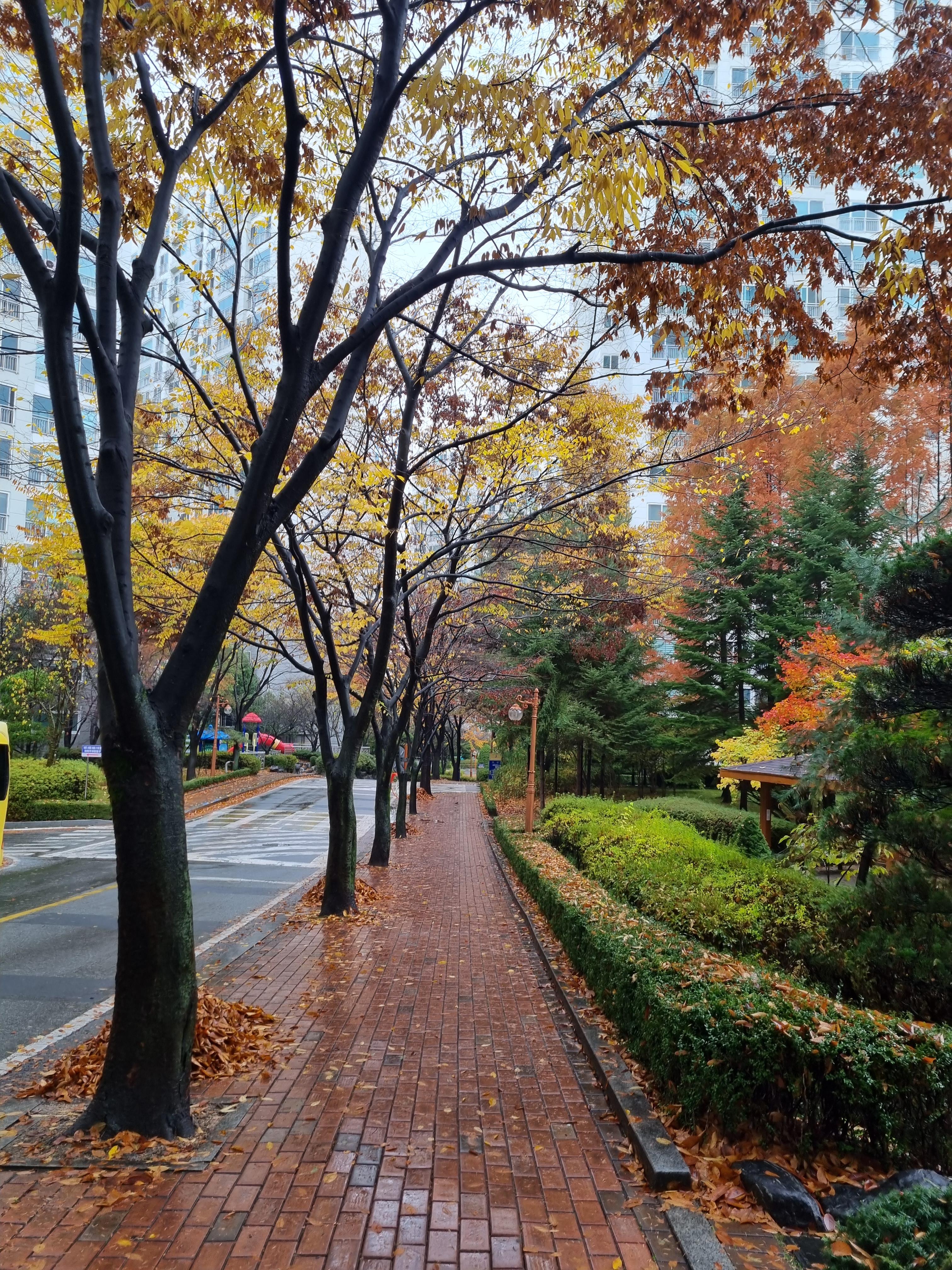 아파트 단지의 알록달록 예쁜 단풍들이 떨어지는데요