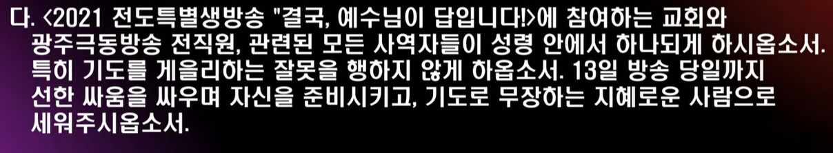 2021년 광주극동방송 전도특병생방송을 위한