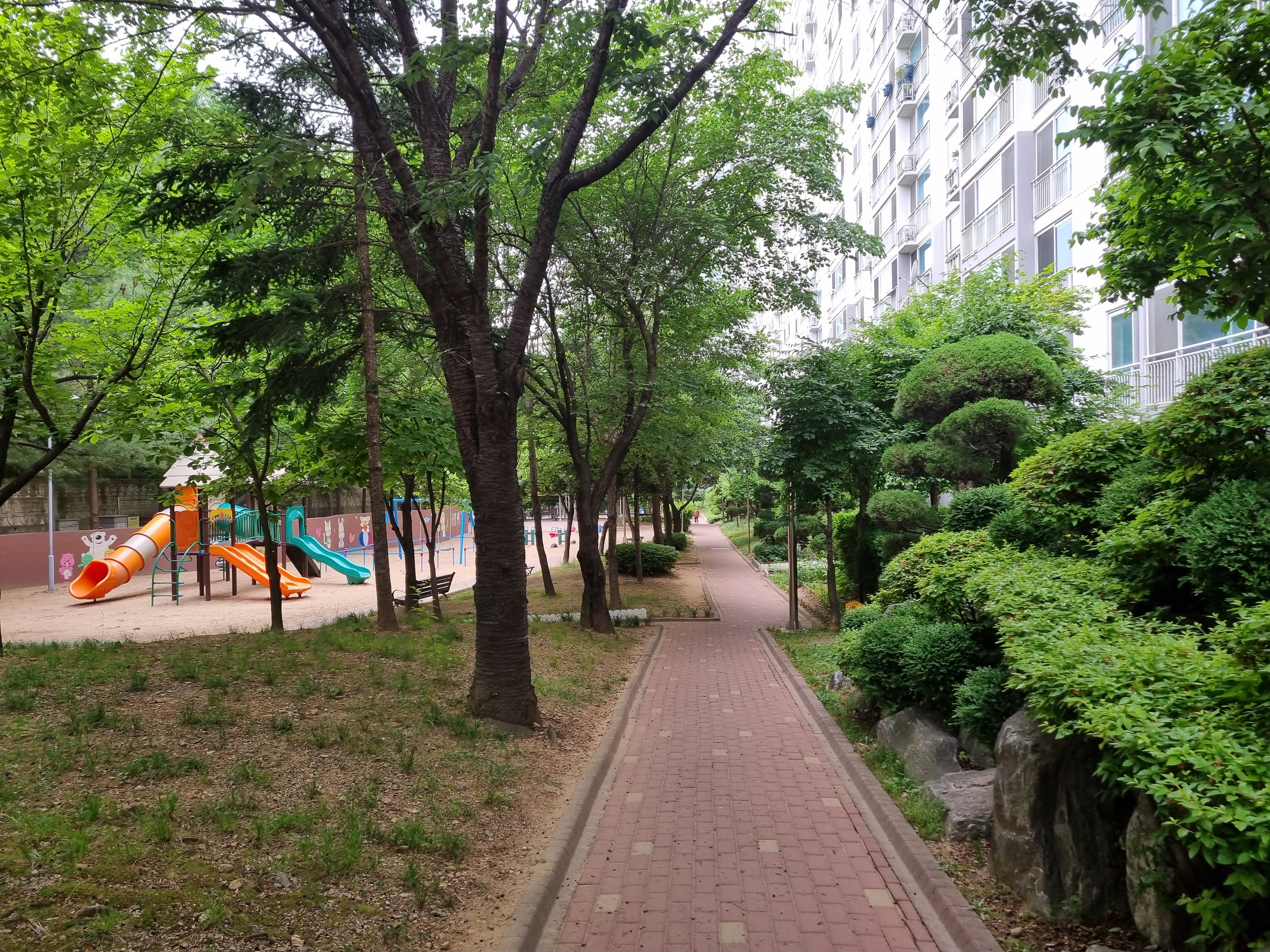집으로 돌아와 아파트 단지를 산책하며