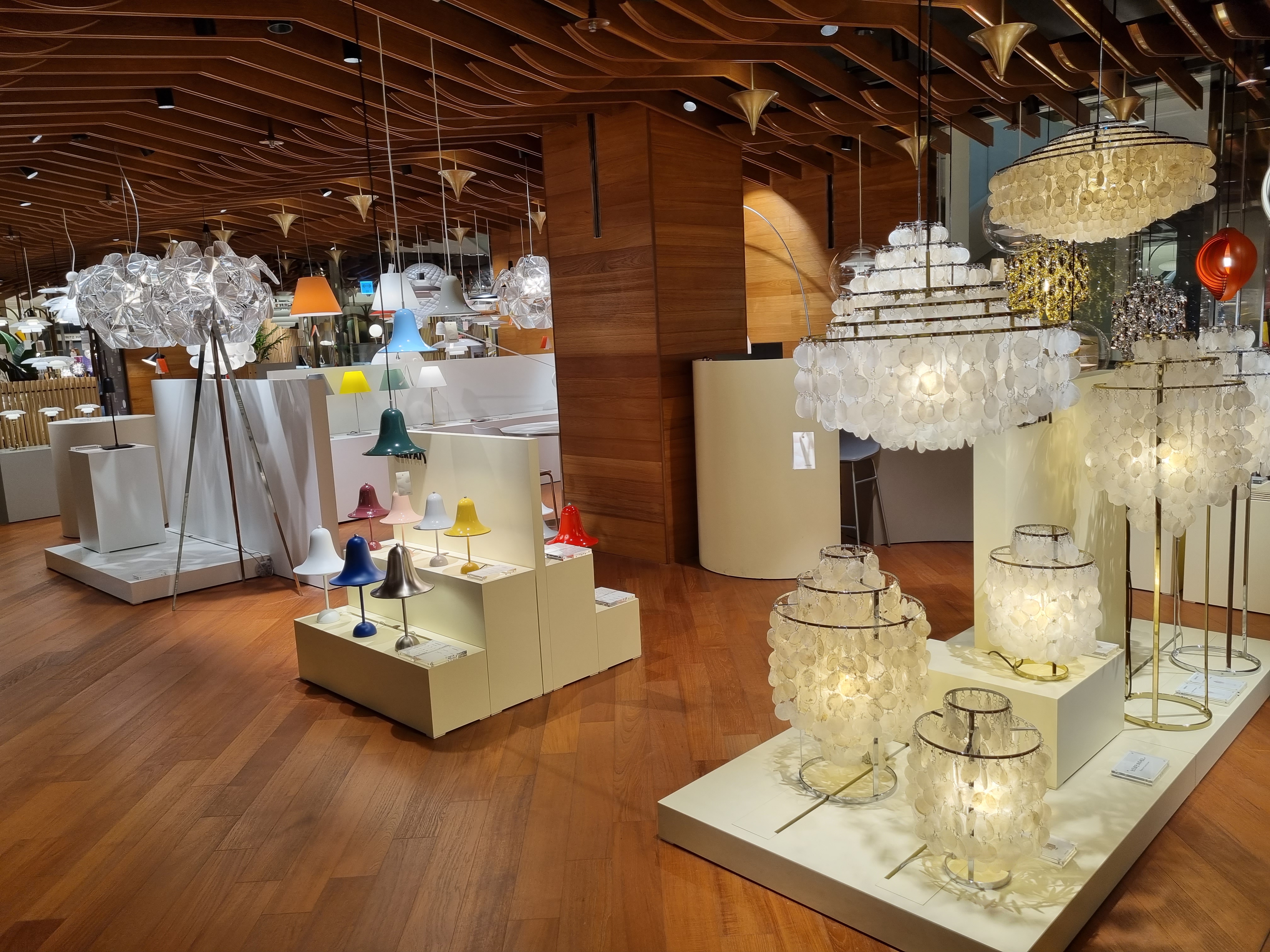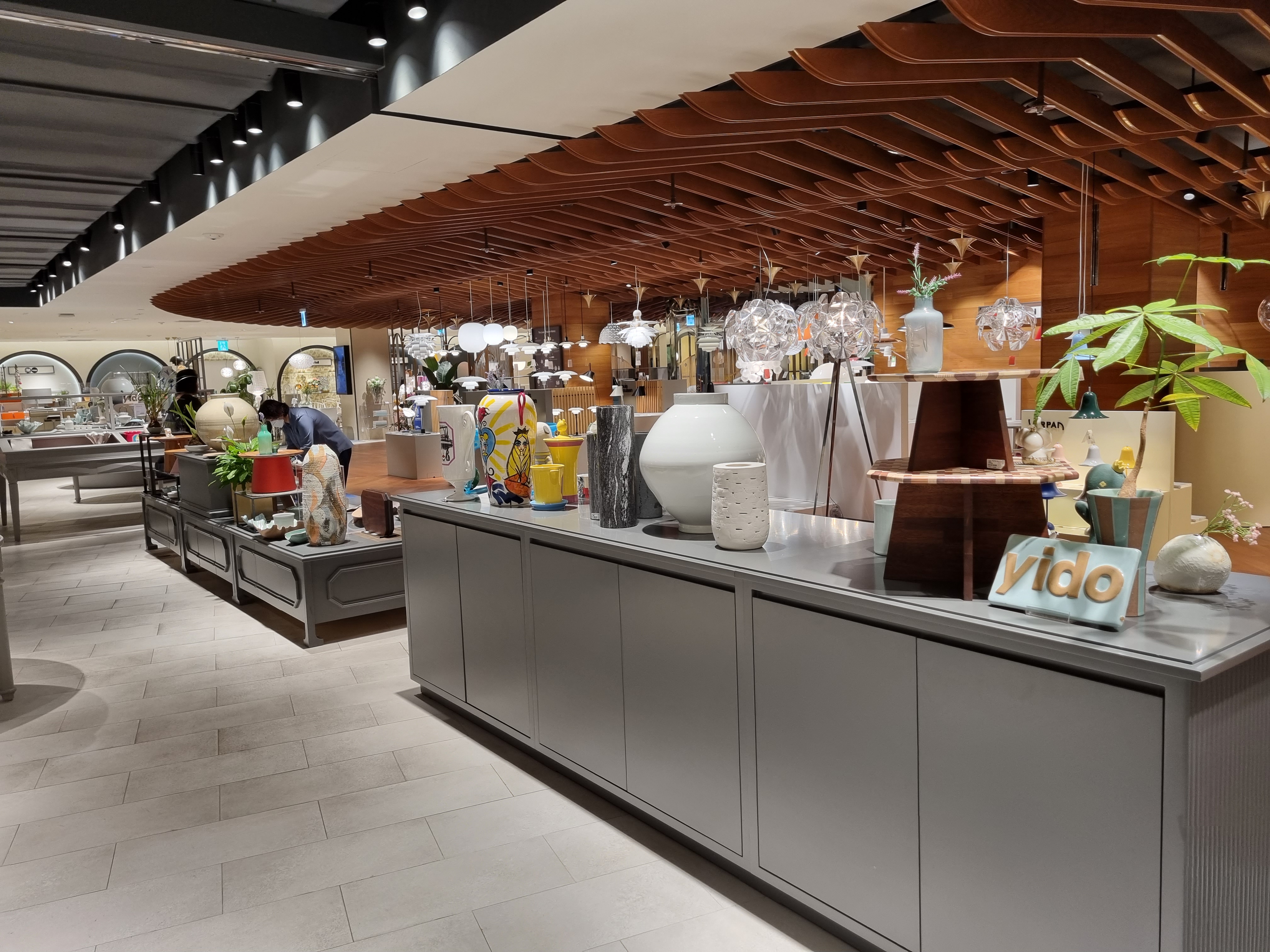 예쁘게 진열된 침구, 그릇, 가구를 보면