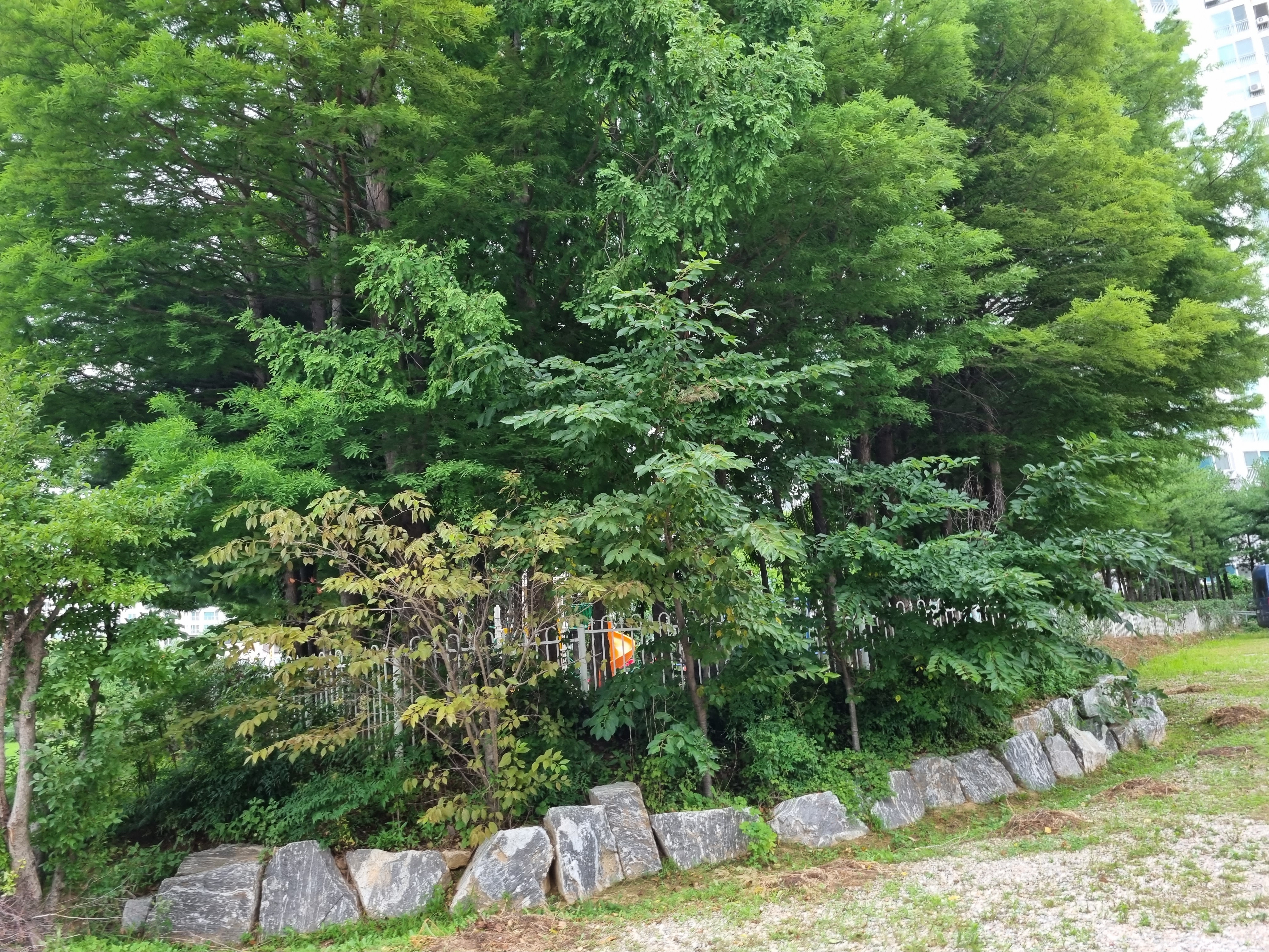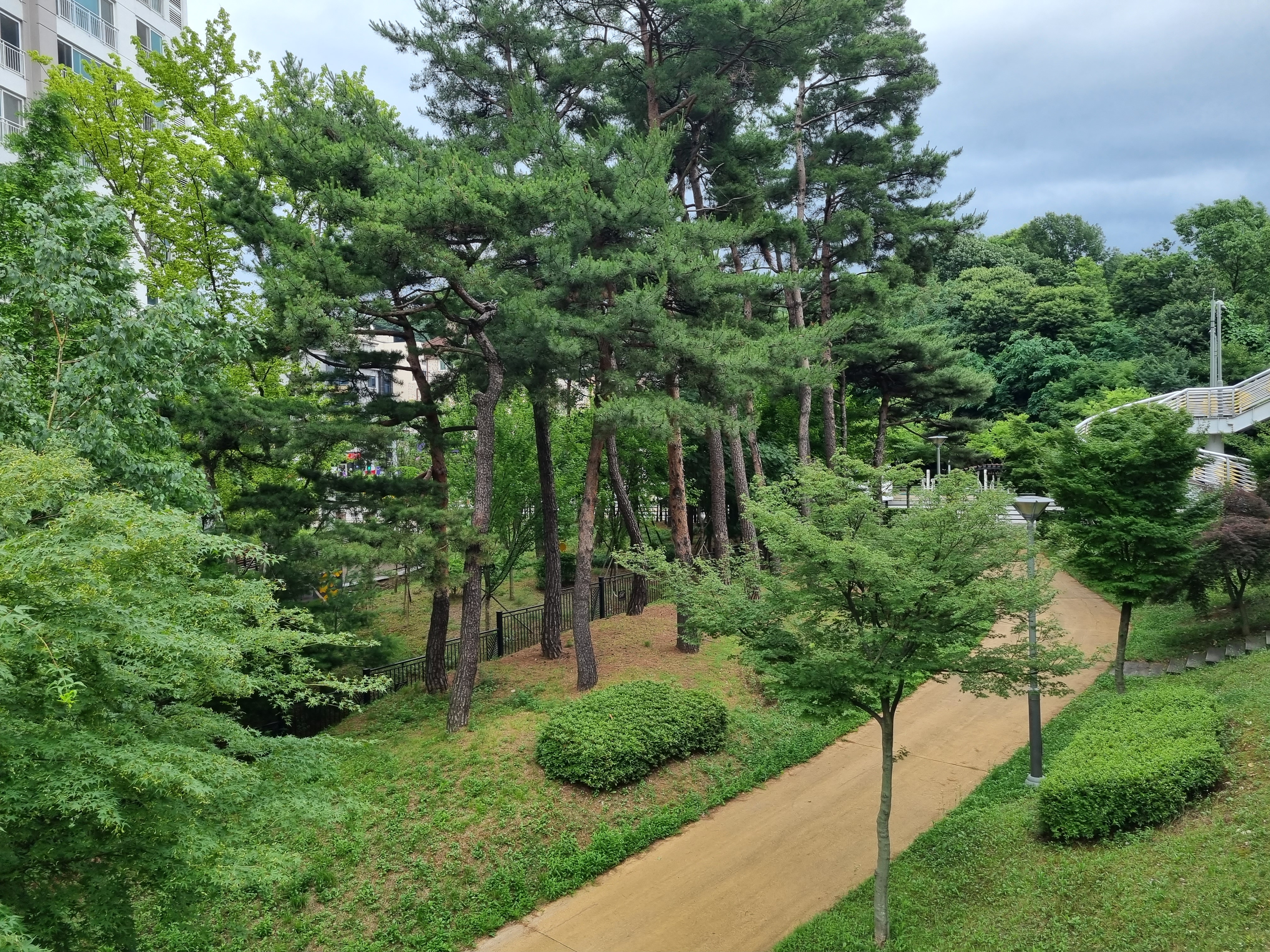 아파트 사이로 난 숲 속 길이