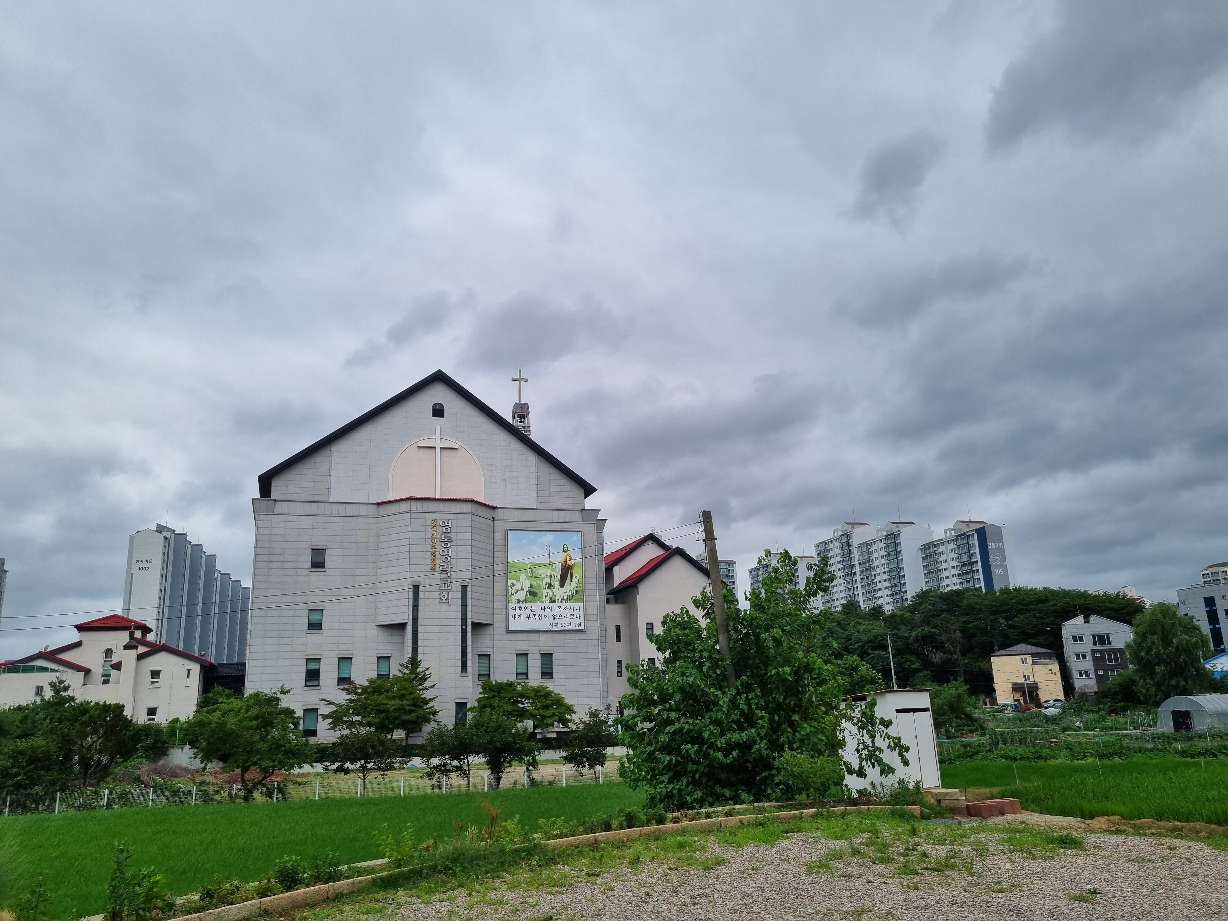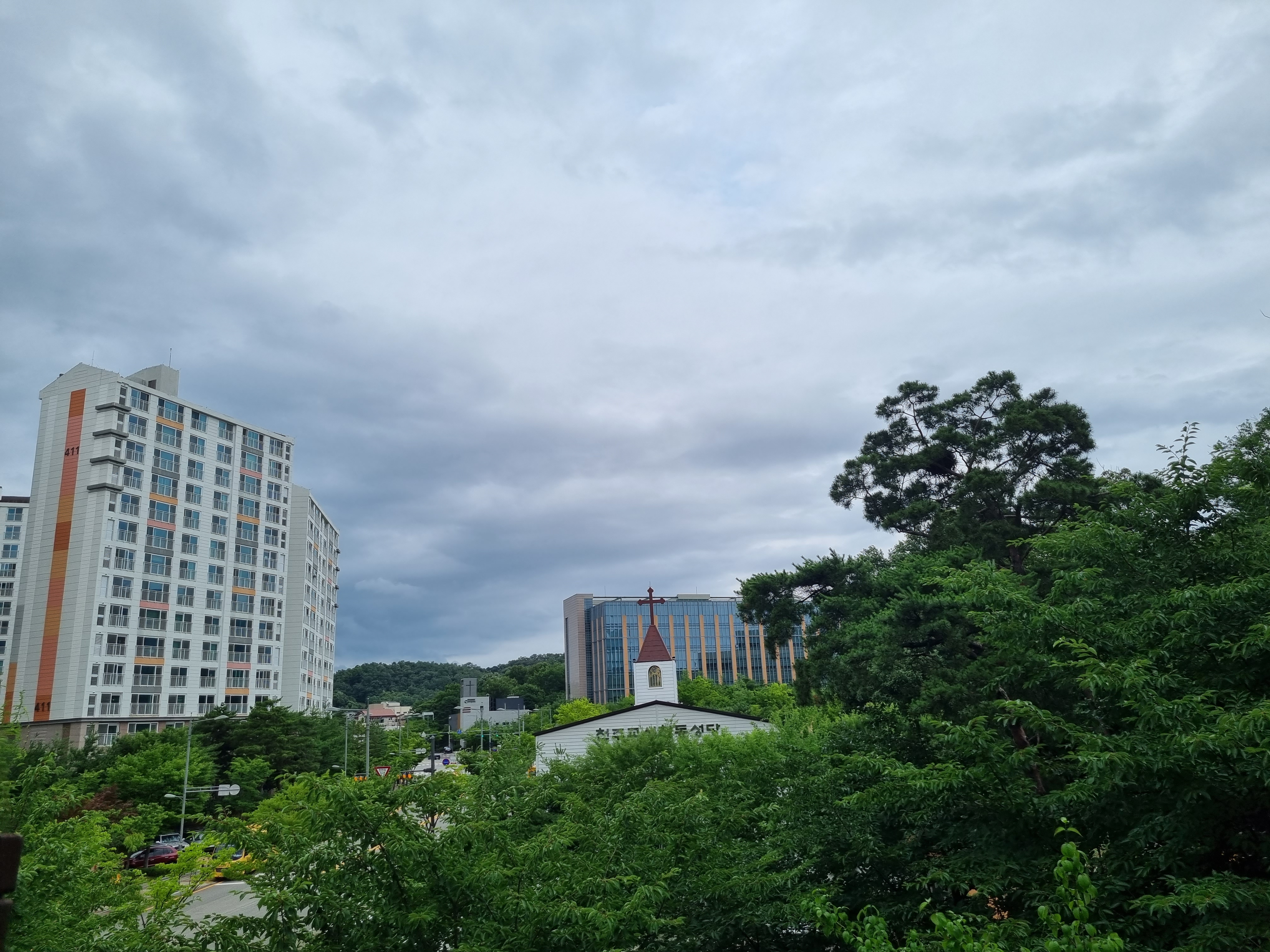 명선교회 사이로 보이는 우리 아파트
