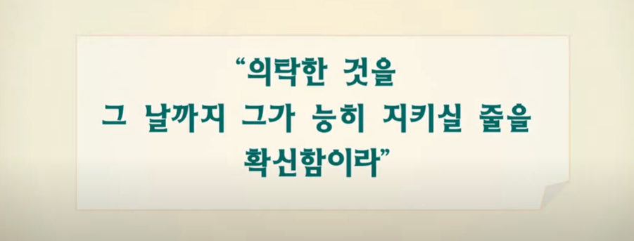 내가 의탁한 것을 그날까지 능히 지키시기로 확신합니다