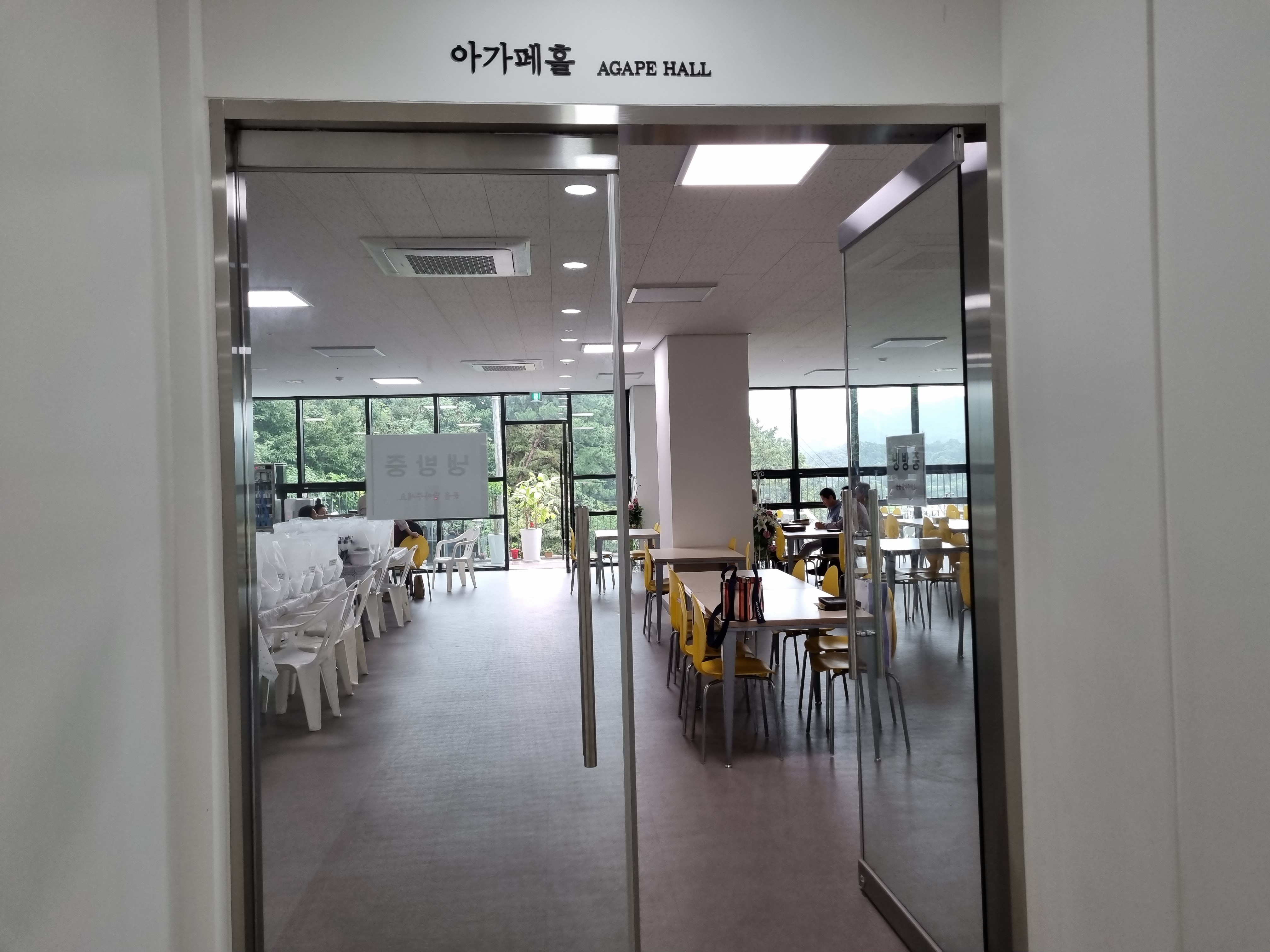 저희 가족이 아가페 홀로 들어가면 멀리서 왔다고