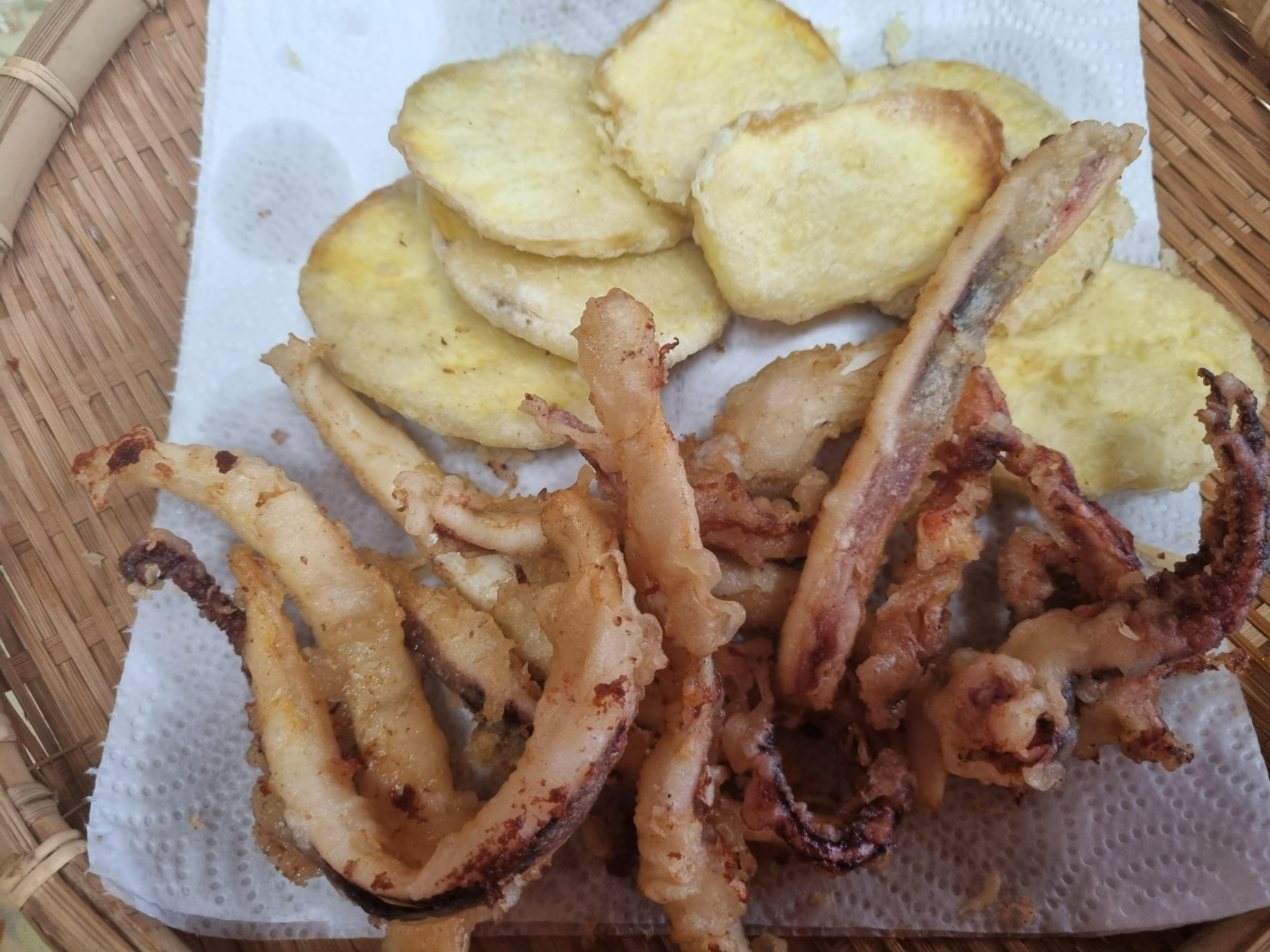오징어 튀김이 경쾌한 소리를 내며 잘 익어서
