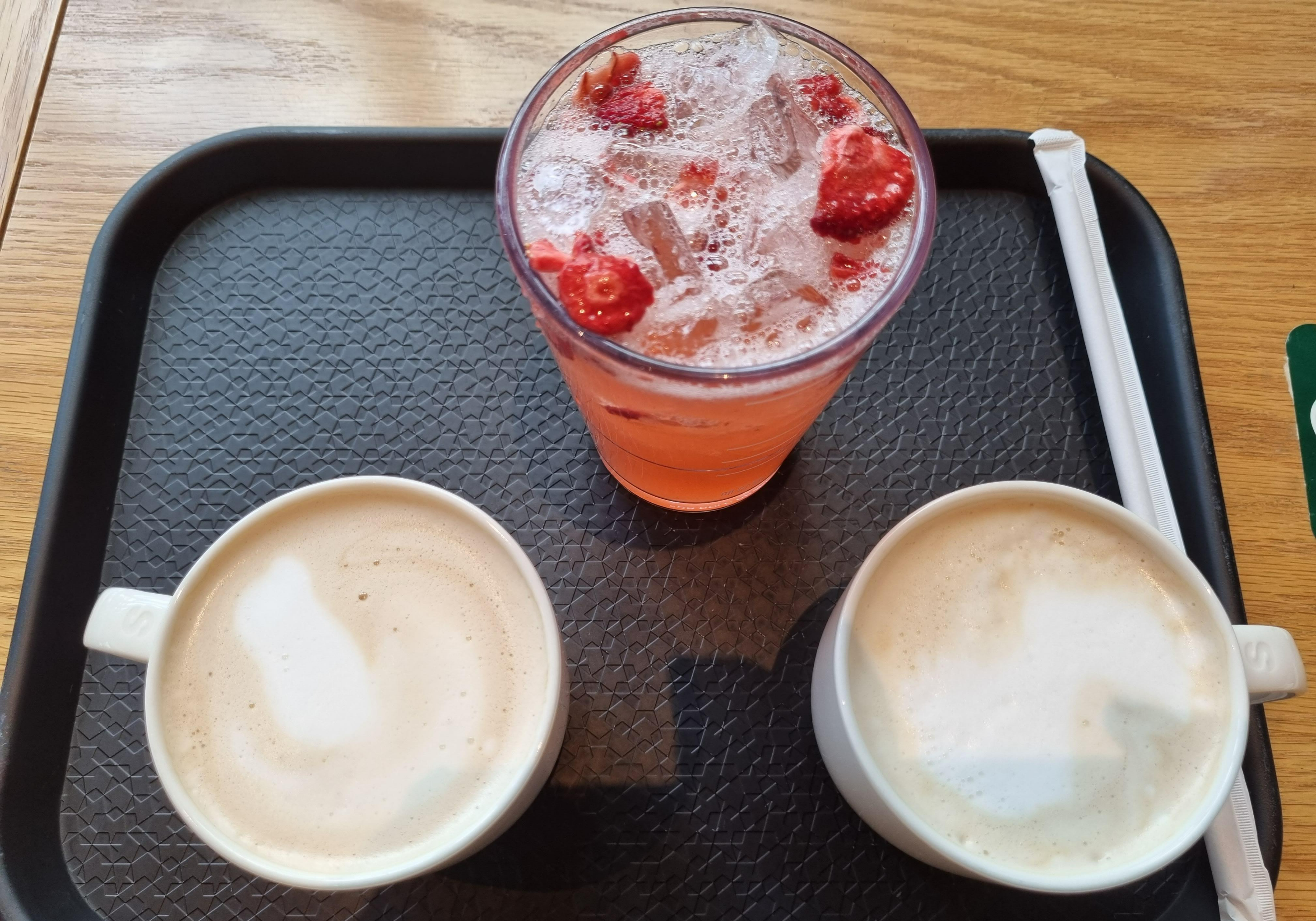 달콤하고 부드러운 카페라테와 음료를 마시며