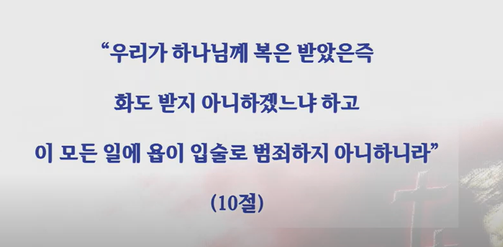 욥은 섭섭한 마음으로 아내에게 이렇게 말합니다