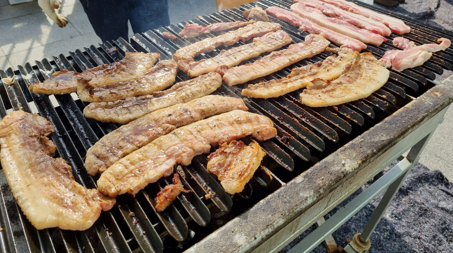 와우~~~ 마당에서는 삼겹살을 직접 굽네요