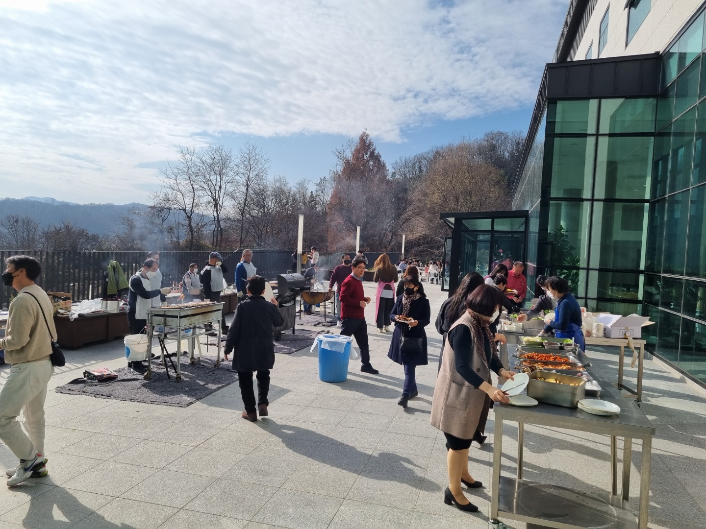 추수감사 예배를 마치고 바베큐 파티가 열렸는데요