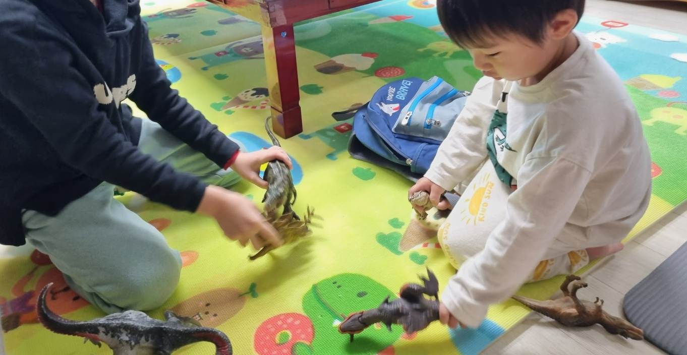 우리 재이도 동생 유진이를 위한 공룡을 가져다주네요