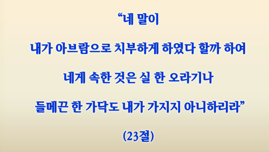 소돔왕 때문에 부자가 되었다는 말이 듣기 싫은 거예요