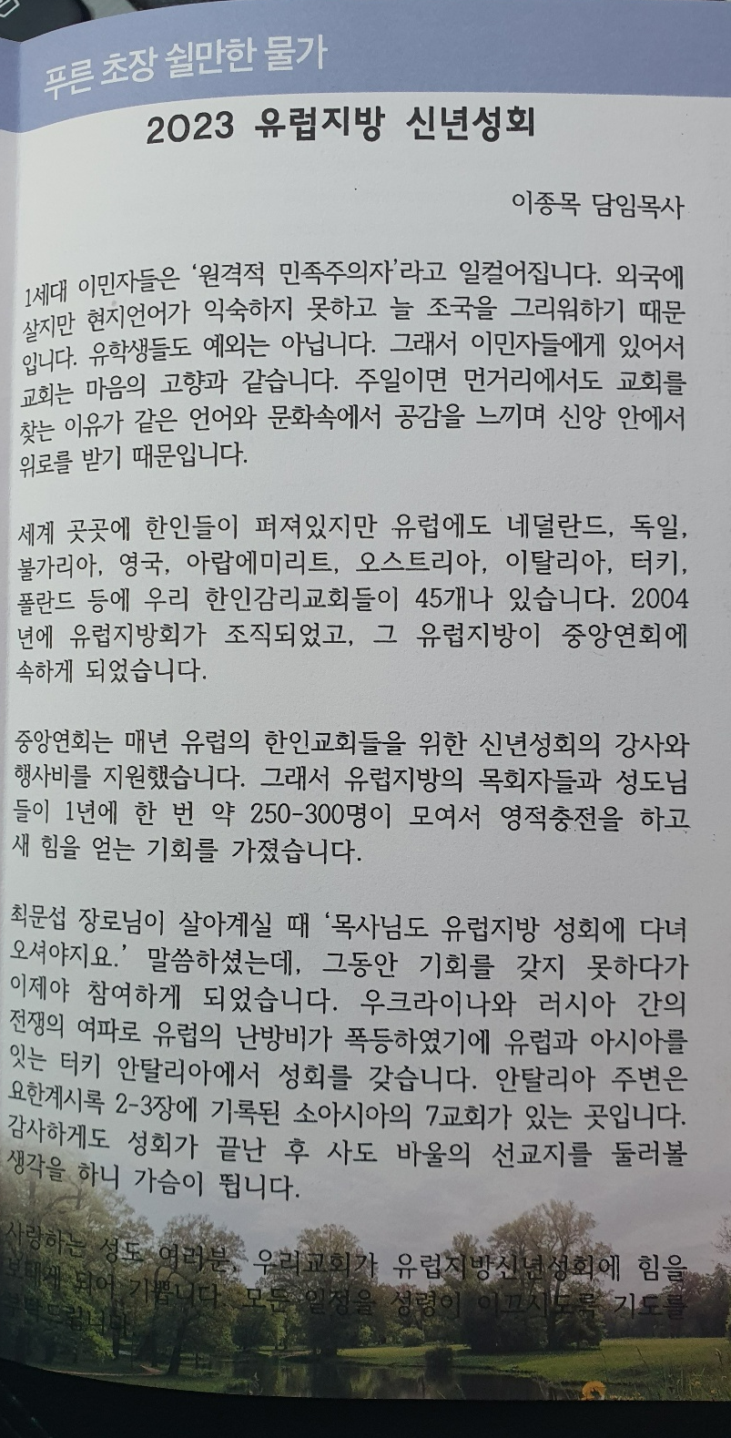 매년 유럽의 한인교회들을 위한