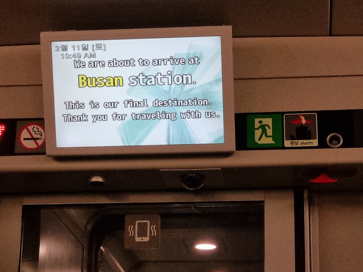 어느새 부산에 도착했다는 안내문구가 뜹니다