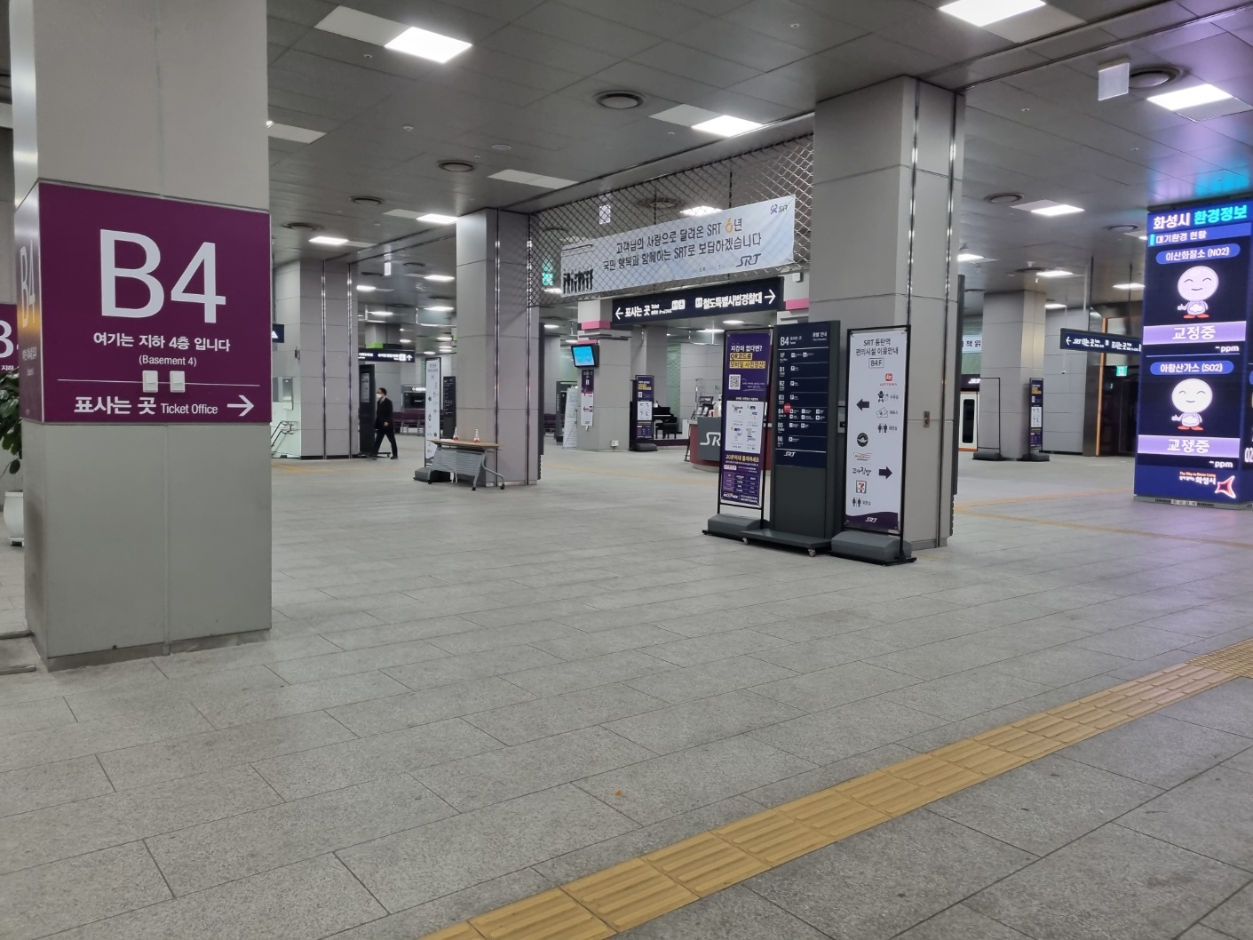 srt 고속열차를 타는 곳 안내가 보여요.
