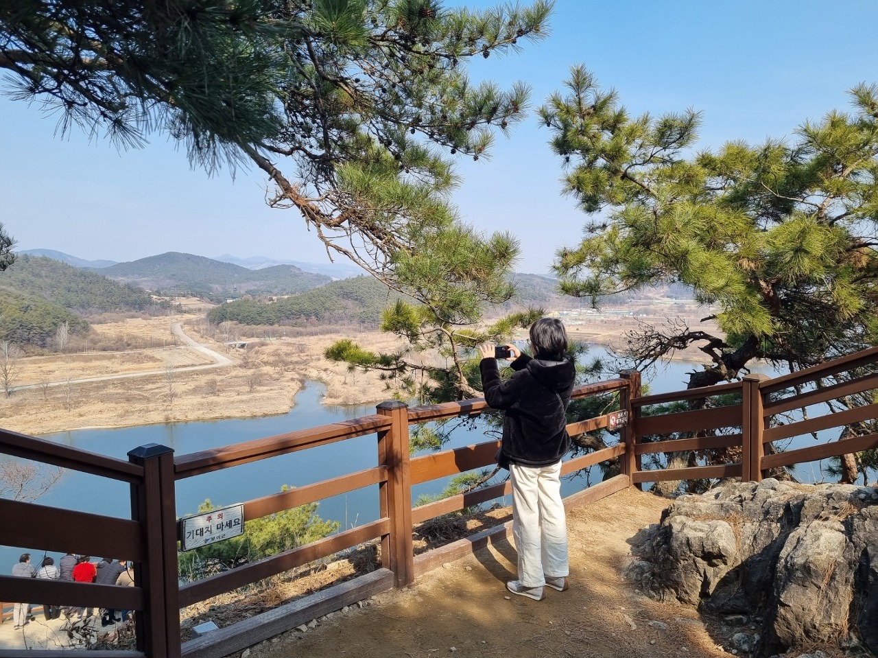 오~~ 나무들 사이로 백마강이 보이는데요