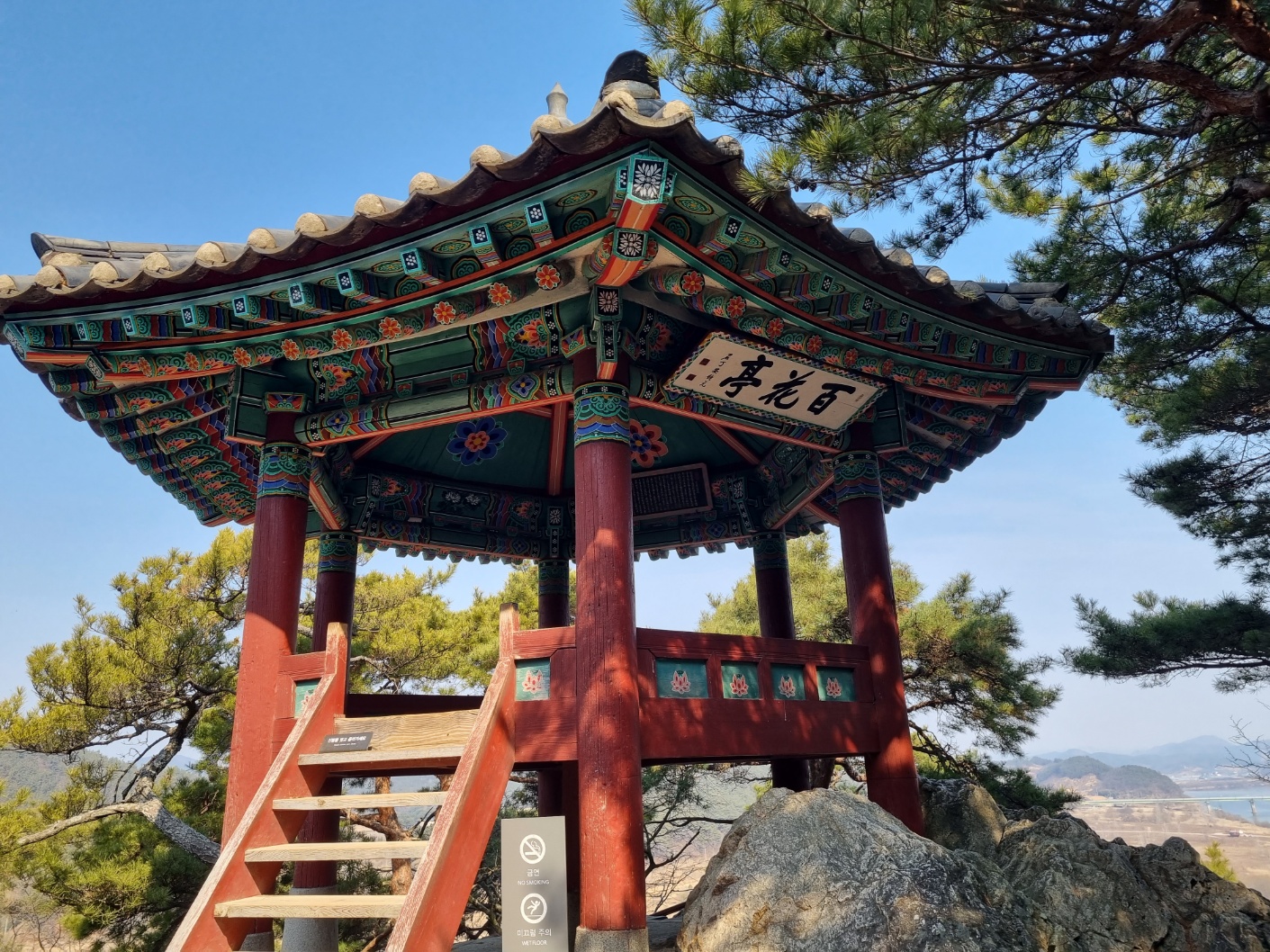 바위 위에는 백화정이라는 조그마한 정자가 있다.
