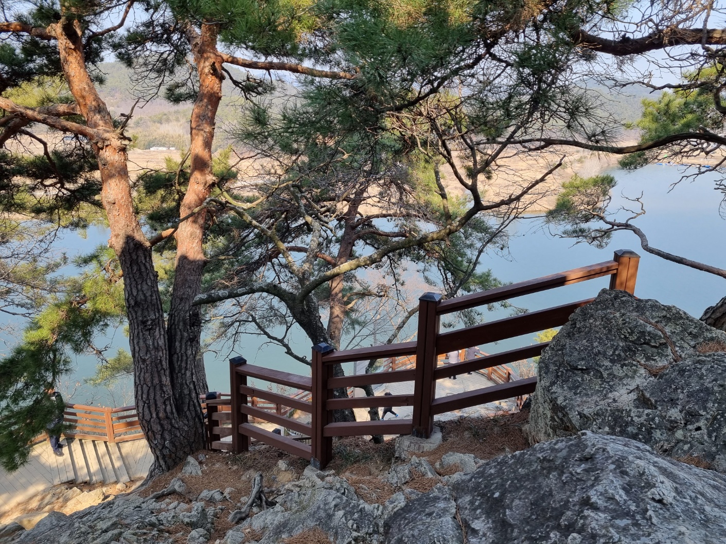 저 아래 강물까지는 꽤 높은 거리인데요