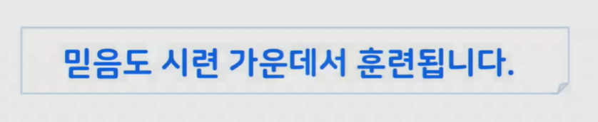 계속 믿음에 대한 이야기로 은혜와 도전을 주기에